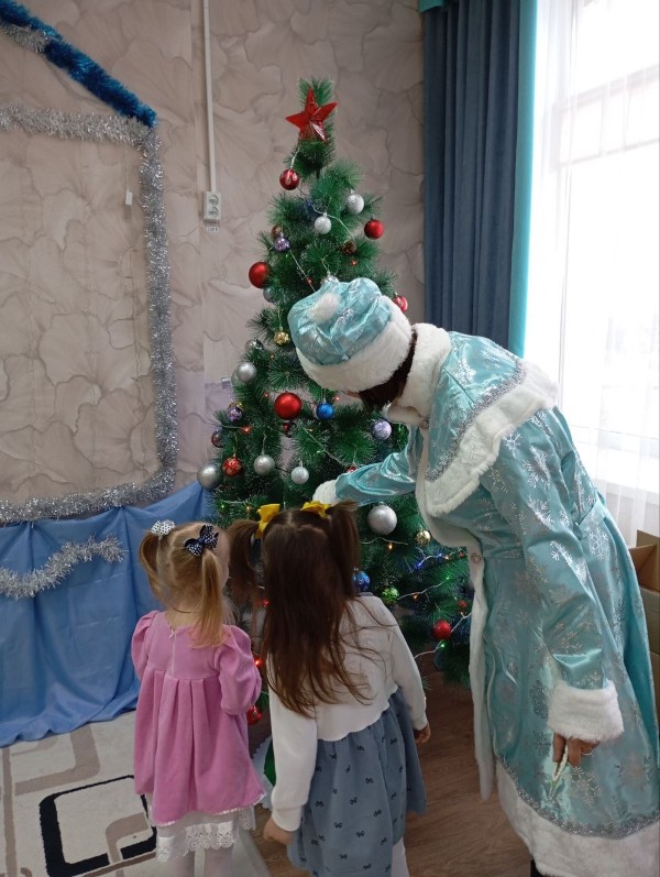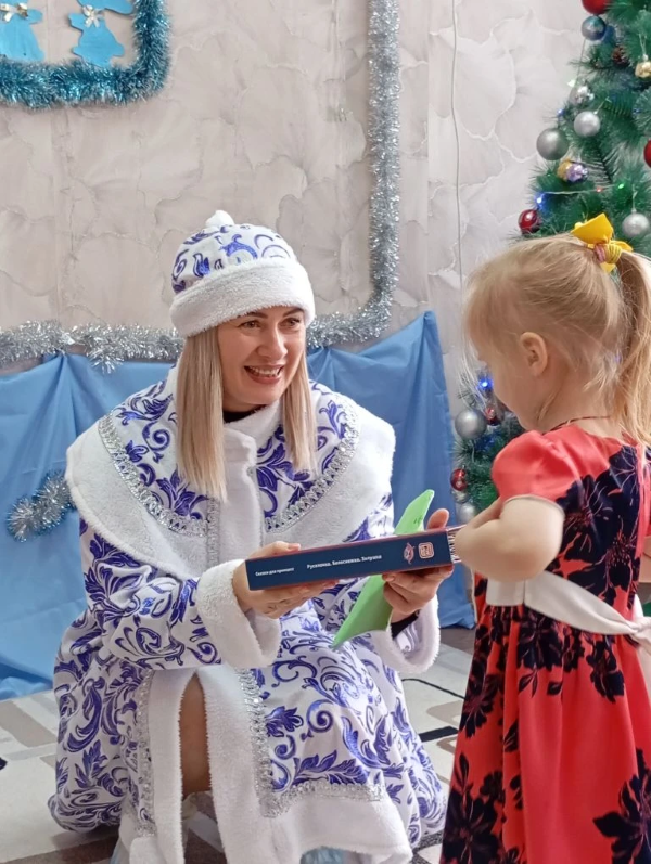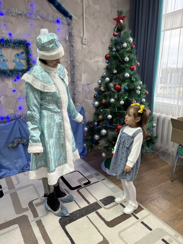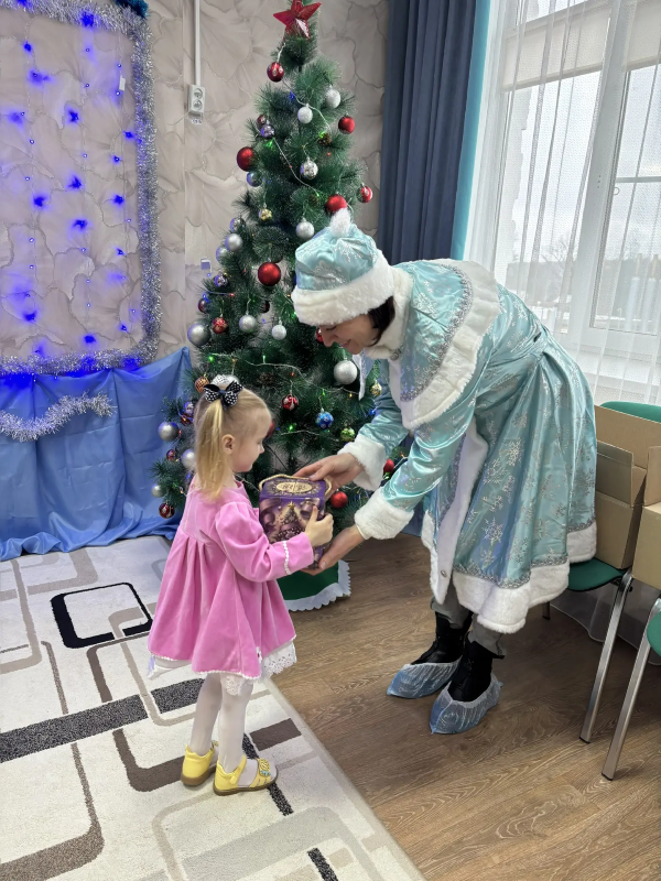 Встреча с долгожданной гостьей вызвала восторг у детей. Снегурочка с румяными щечками и доброй улыбкой поздравила каждого ребёнка с наступающим Новым годом, пожелав здоровья, счастья и исполнения самых заветных желаний.