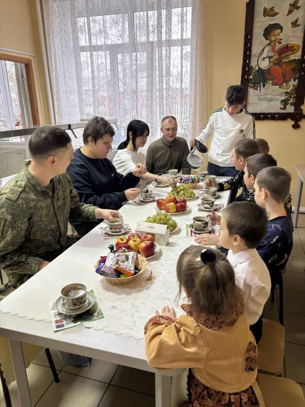 Военнослужащие пообщались с детьми, рассказали о своей службе и ответили на их вопросы. Гости интересовались увлечениями и мечтами ребят, а также условиями их проживания в Центре. Дети с удовольствием прочли новогодние стихи и пригласили гостей на чаепитие.