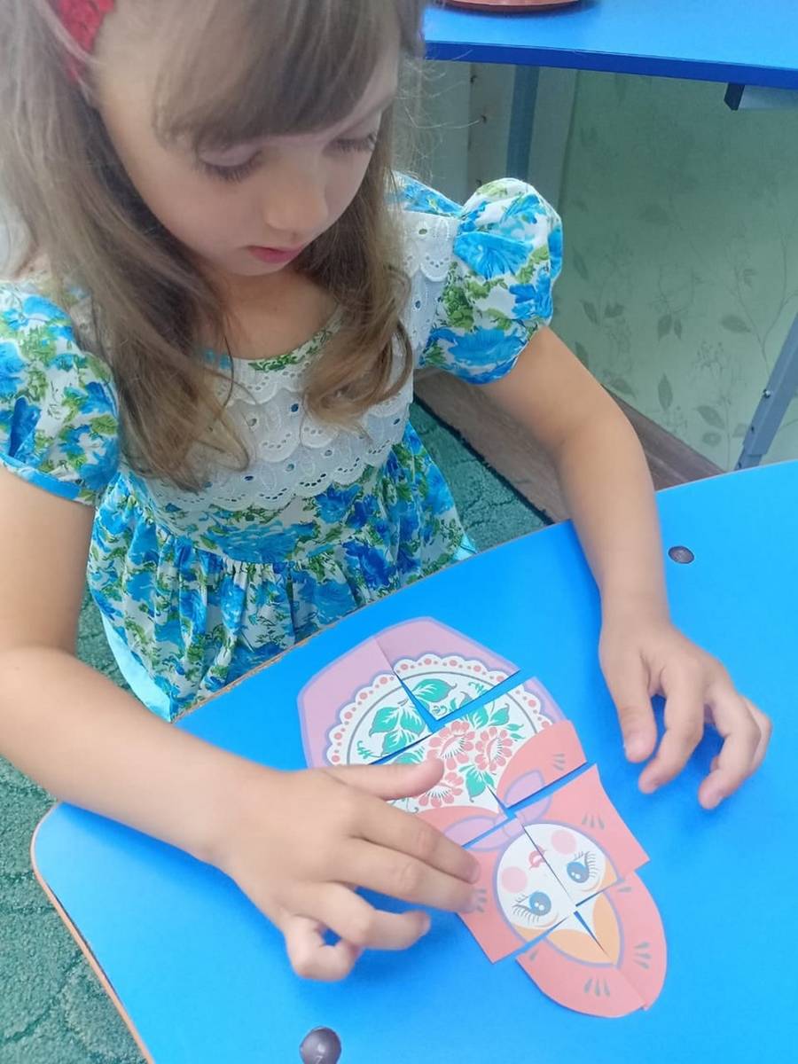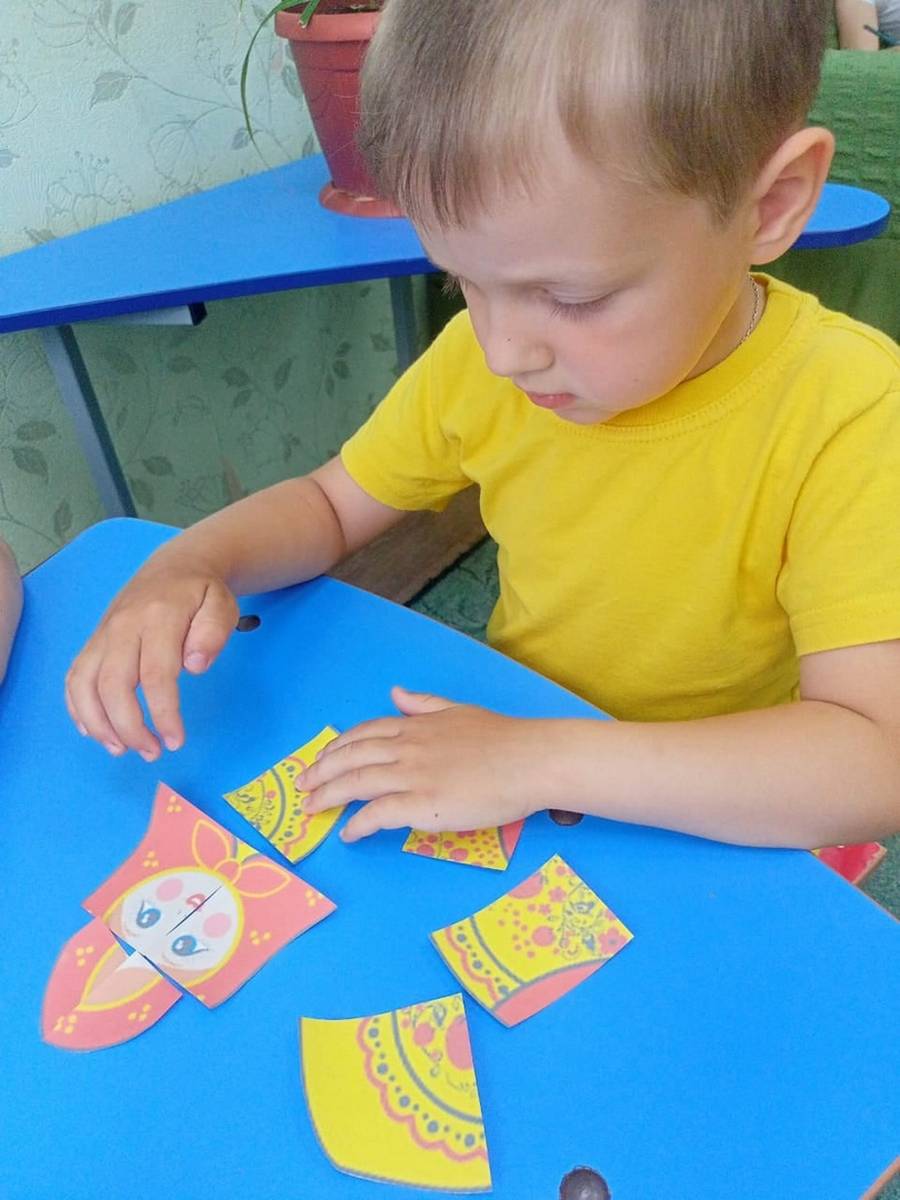 Поиграли в такие игры, как: "Расставь матрёшек по росту", "Кто быстрее соберёт матрёшку", "Собери пазл". А дальше ребята отправились в мастерскую украшать матрешек в яркие сарафаны. Дети были настоящими мастерами - умельцами. На занятии были закреплены знания цветов, понятия «один-много», определены размеры матрешек. У ребят возникло желание самим создавать и творить по мотивам русского народного творчества, появился интерес к народным игрушкам.