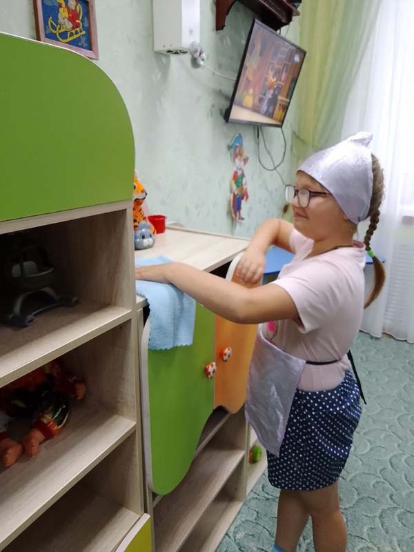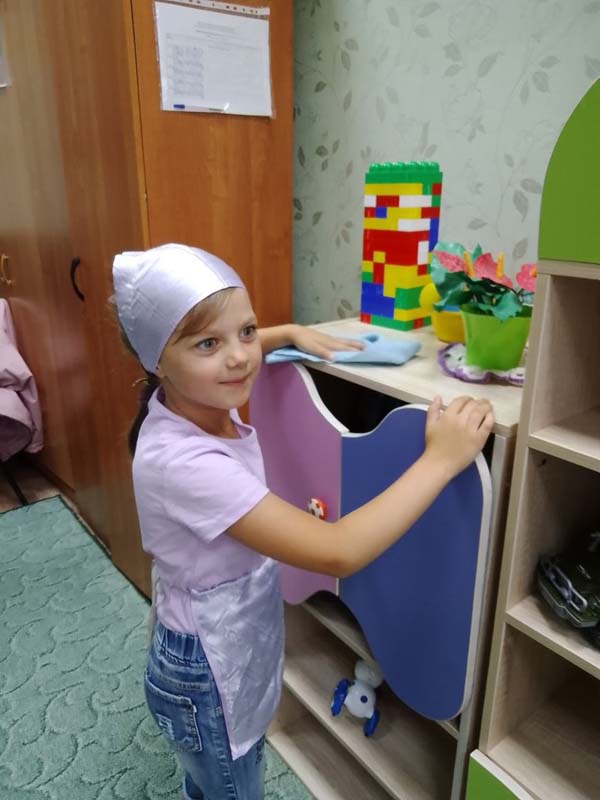 Трудовое воспитание - важный проверенный принцип формирования всесторонне и гармонически развитой личности. Труд в процессе воспитания выступает, как ведущий фактор развития личности, как способ творческого освоения мира, обретения опыта посильной трудовой деятельности в различных сферах, как неотъемлемый компонент общего образования. На занятии "Приют - наш дом, наведём порядок в нём" дети под руководством воспитателя Кузнецовой Г.В. убрали игровую комнату: полки, полили и оросили цветы , вытерли пыль и расставили игрушки , пропылесосили ковер, застелили диван. Воспитанники получили удовлетворение от результатов своего труда и хорошее настроение.