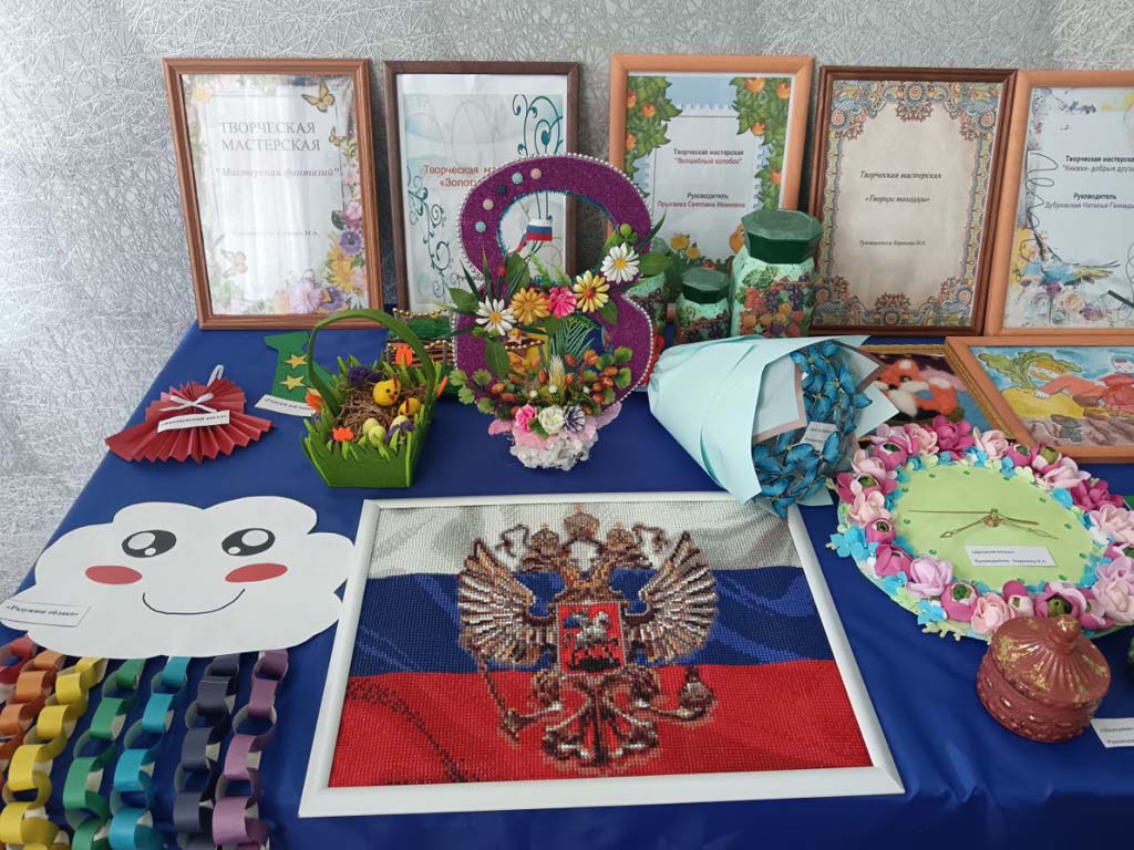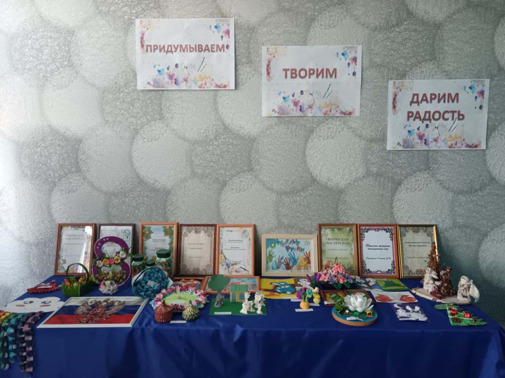 В ОКУ "Охочевский центр "Непоседы" прошла отчетная выставка работ творческих мастерских за 1 квартал под девизом "Придумываем, творим, дарим радость".