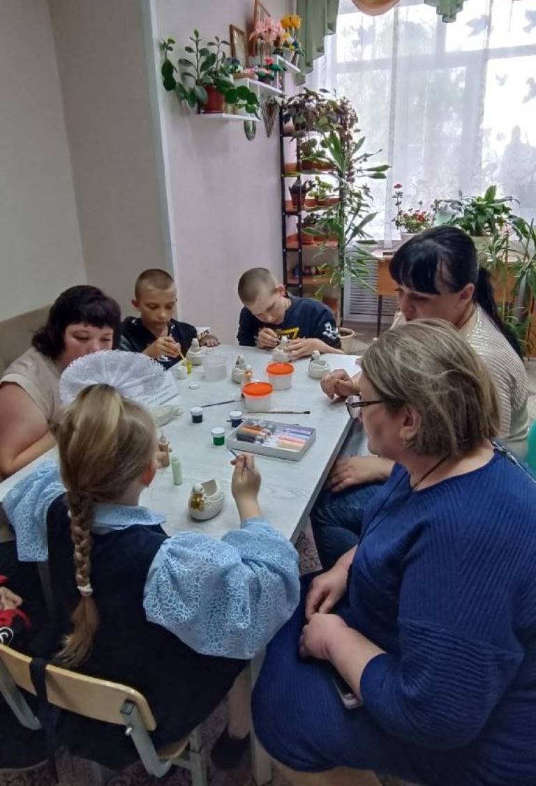 В ОКУ "Охочевский центр "Непоседы" продолжается замечательный праздник - День семьи. Для гостей открыла свои двери интерактивная площадка № 2 "Семья - это творчество". Воспитатель Коренева И.А. провела для участников мероприятия мастер-класс по созданию фигурки утицы — символа семейного очага. Гипсовые фигурки уток, которые участники мастер-класса забрали с собой, будут служить им талисманами, которые защищают семью и приносят счастье. В нашем случае утка стала символом любви, семейного очага, продолжения рода и гармоничных отношений между членами семьи. Воспитатель Стародубцева С.В. провела мастер-класс "Ромашка - символ семьи". Ромашка не случайно выбрана символом семьи, поскольку лепестки у неё соединены сердцевиной, как члены одной семьи. Участники мастер-класса с удовольствием вырезали из фоамирана детали для будущих цветов, придавая им форму, затем приклеили соцветие и украсили сердцевинку божьей коровкой. Творческая работа вызвала интерес к новому виду творчества как у детей, так и у взрослых.