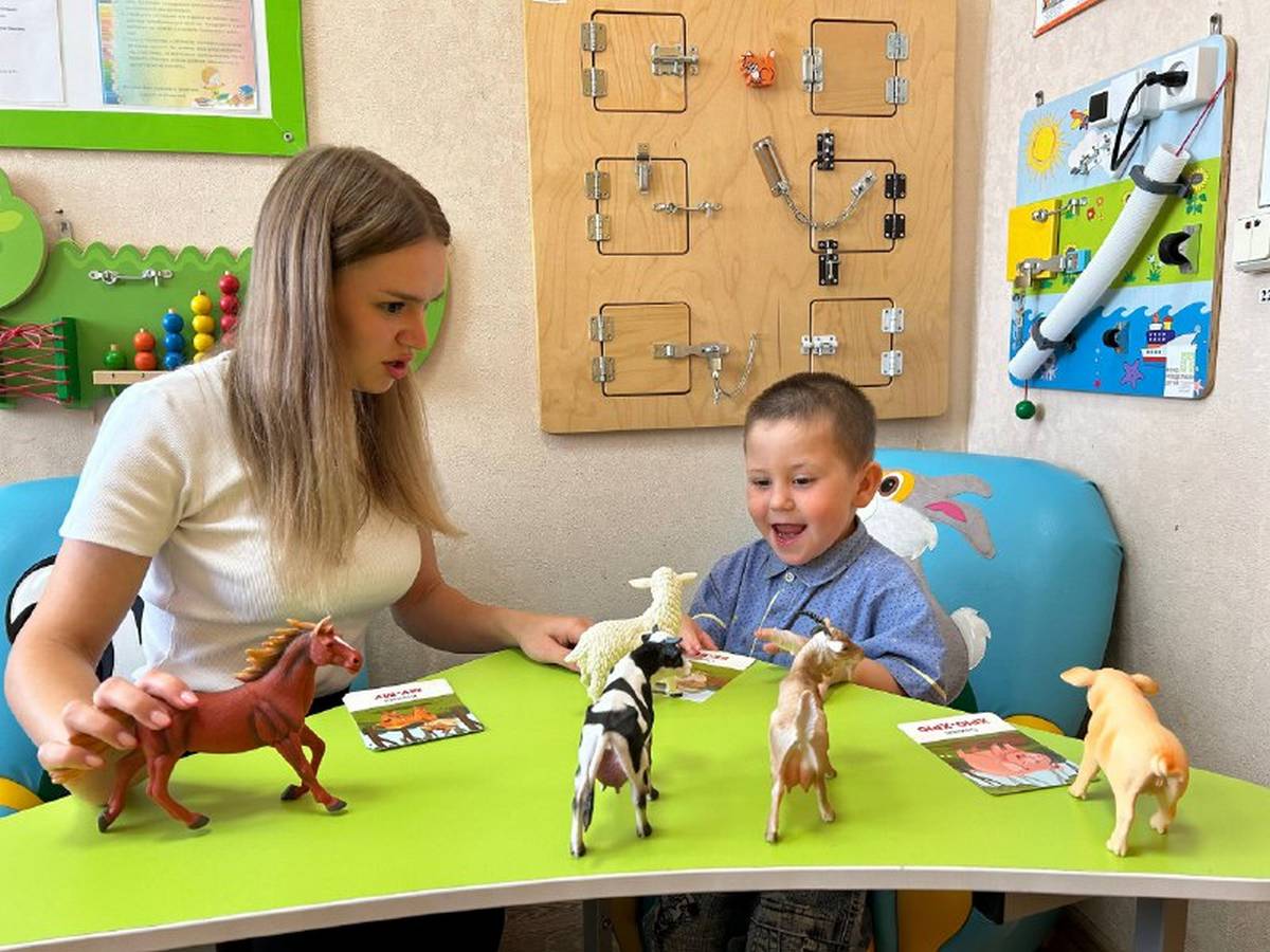 Наталья Евгеньевна использовала игровые приемы: ребенок с большим интересом занимался с фигурками животных, воспроизводил их звуки, а также устанавливал связь между фигурой и иллюстрацией. Такая форма занятия стимулирует мотивацию и внимание малыша, делая процесс обучения легким и увлекательным.