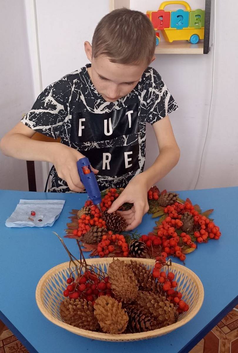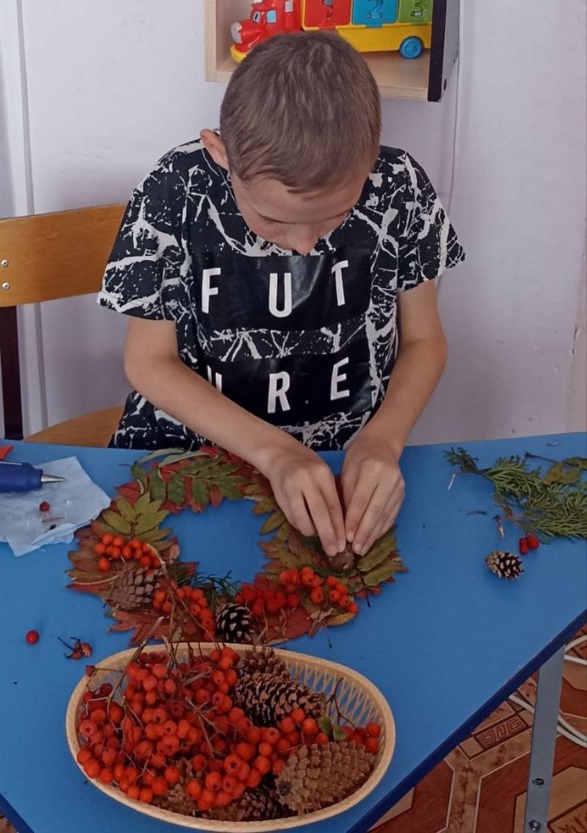 В ОКУ "Охочевский центр для несовершеннолетних "Непоседы" прошёл мастер-класс по изготовлению осеннего венка.