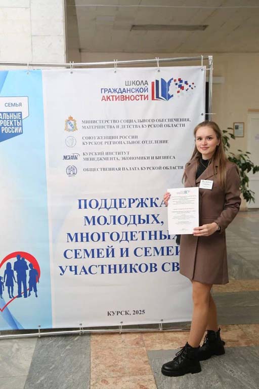 Специалисты Центра — учитель-дефектолог Самойлова Н.Е. и воспитатель Прыгаева С.И. — прошли трёхдневные курсы в Школе гражданской активности по направлению «Поддержка молодых, многодетных семей и семей участников СВО». Обучение проходило с 12 по 14 ноября в Курском институте менеджмента, экономики и бизнеса (МЭБИК).