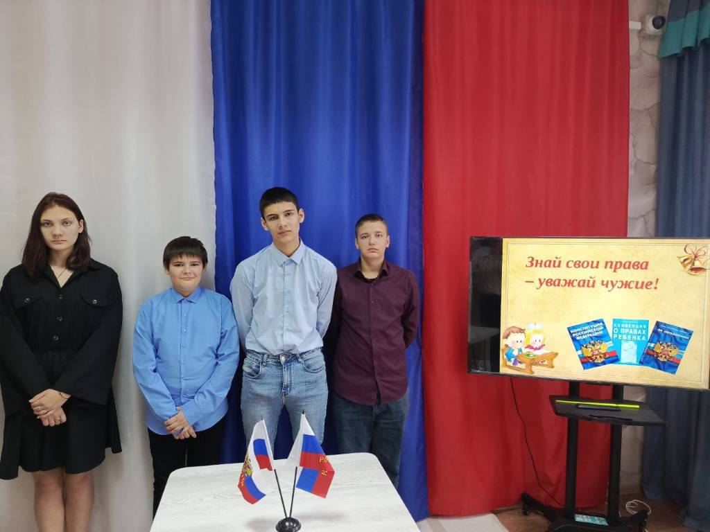 Мероприятие началось с прослушивания гимна нашей страны. Ребята познакомились с историей Всемирного дня защиты прав детей, узнали значение таких понятий, как "гражданин", "правила", "законы", "административная и уголовная ответственность", "права человека" и "права ребенка", познакомились с кратким содержанием гарантирующих права человека документов: Всеобщей декларации прав человека, Конвенции ООН о правах ребенка, Конституции Российской Федерации, которые обязывают обеспечивать детям достойную жизнь.