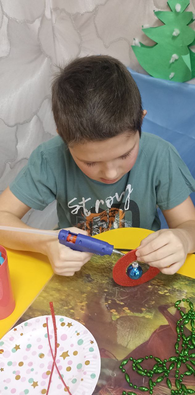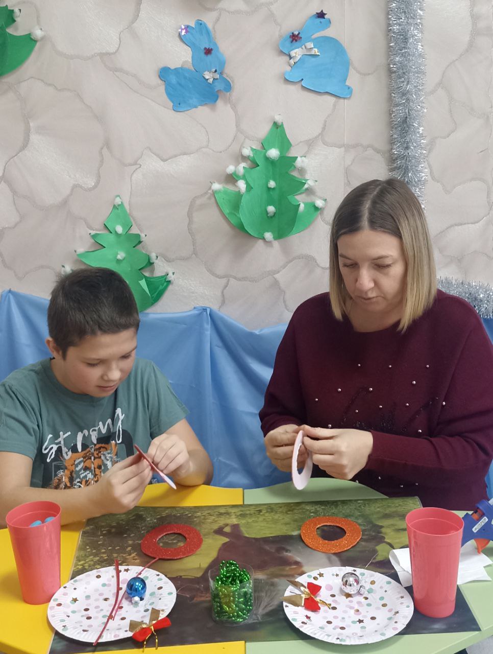Необычное занятие по изготовлению рождественского венка прошло в творческой мастерской "Мастерская фантазий". Перед началом занятия воспитанник узнал о традиции украшения домов венками в канун Нового года и Рождества и о том, какими они бывают.