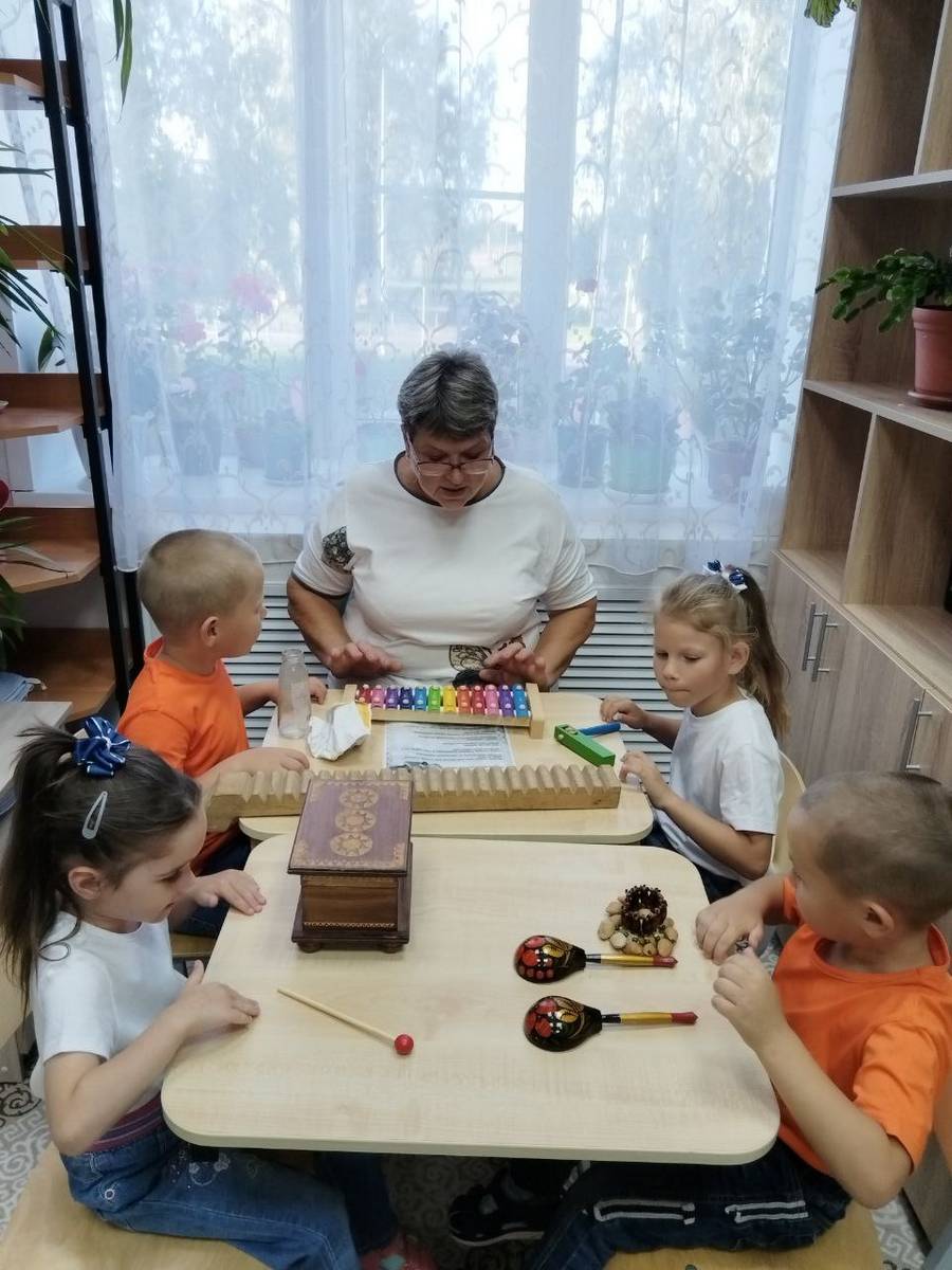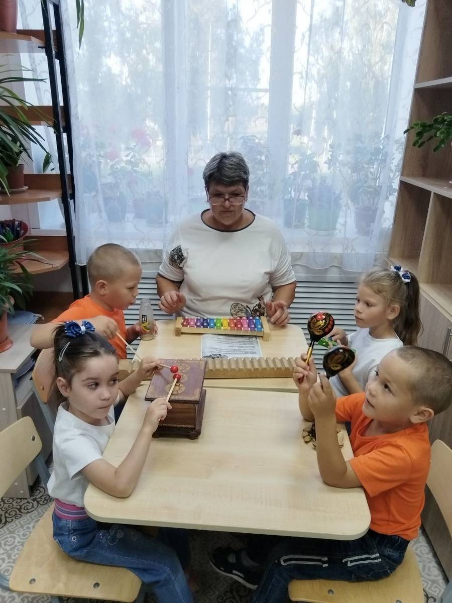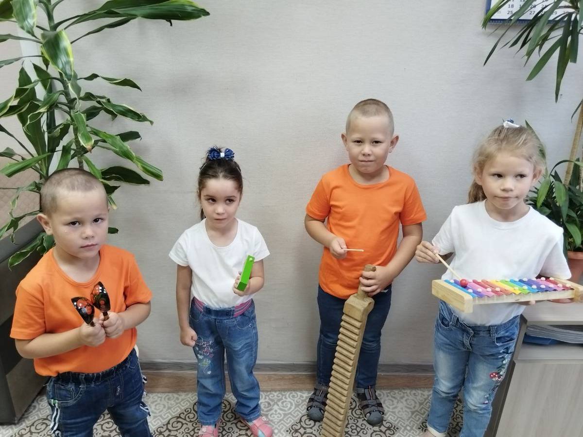Воспитанники на музыкальном занятии, после проведенной эвристической беседы, с большим интересом с помощью шумов и звуков озвучивали предложенную сказку. Простота используемых материалов и увлекательный формат занятия сделали День музыки для его участников по-настоящему праздничным и запоминающимся.