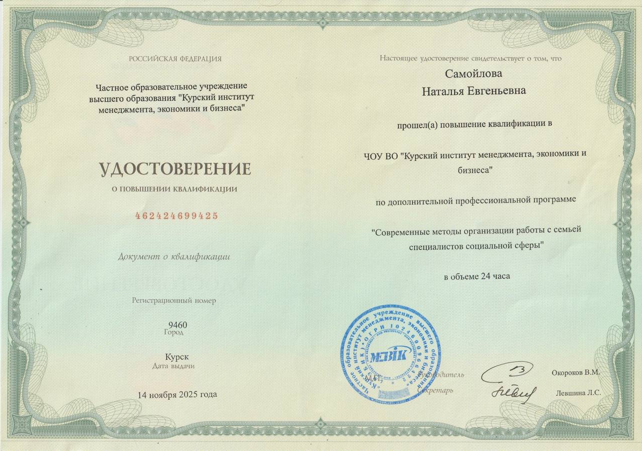 2025 год Сертификат 10.04.2025 Сертификат 10.04.2025 Сертификат 24.04.2025 Сертификат 24.04.2025 Удостоверение 14.11.2025 Удостоверение 14.11.2025 View the embedded image gallery online at: https://ohochevskiy-priyut.ru/index.php/videoportfolio-spetsialistov/120-uchitelya-defektologi/149-uchitel-defektolog-samojlova-natalya-evgenevna/152-kursy-povysheniya-kvalifikatsii/375-2025-god#sigProIdf26618f368 > >