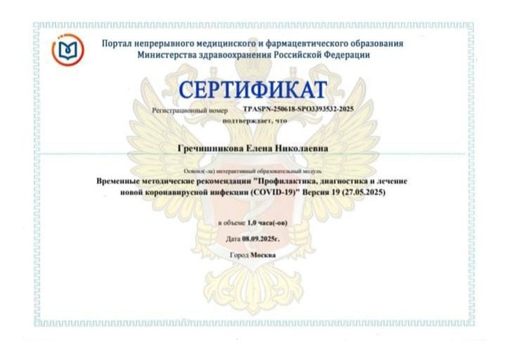 Курсы повышения квалификации Сертификат Сертификат Диплом Диплом Диплом Диплом Сертификат 24.04.2025 Сертификат 24.04.2025 View the embedded image gallery online at: https://ohochevskiy-priyut.ru/index.php/videoportfolio-spetsialistov/121-medrabotniki/125-meditsinskaya-sestra-grechishnikova-elena-nikolaevna/128-kursy-povysheniya-kvalifikatsii#sigProIdf1811675b4 > >