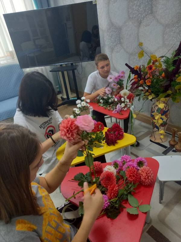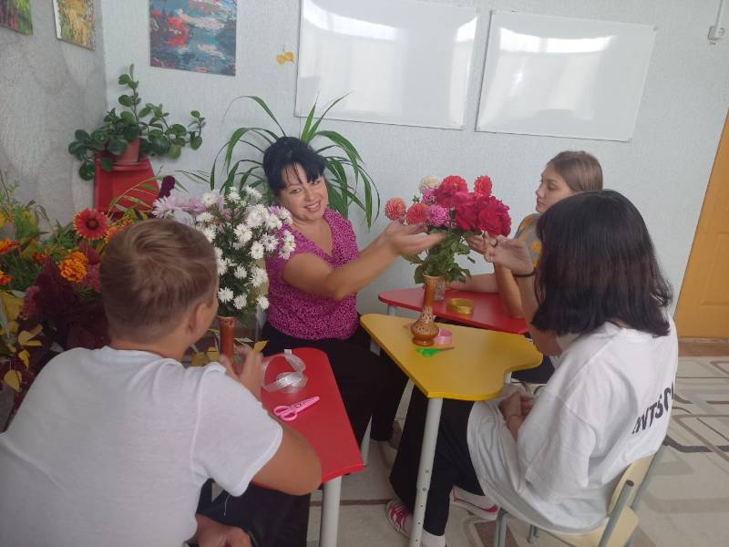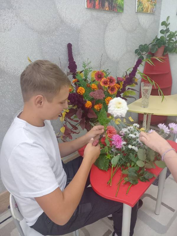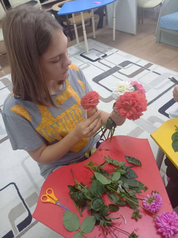Сегодня на занятии воспитанникам ОКУ "Центр «Непоседы» было предложено побыть в роли флористов и составить композиции из цветов.