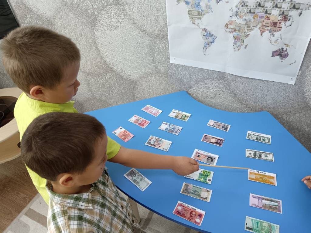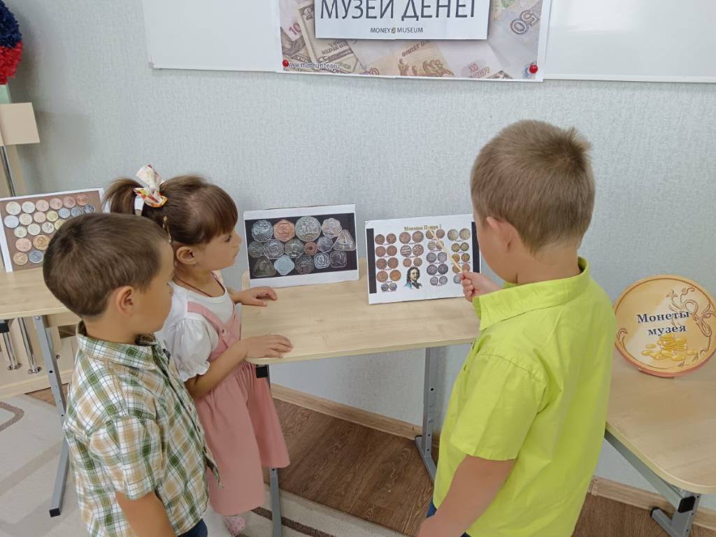 Экскурсия стала настоящим погружением в историю возникновения денег. Ребята смогли познакомиться с экспонатами "музея", среди которых особое внимание привлекли монеты времён Петра I, а также одни из первых монет, возникших на Земле. Дети увидели купюры всего мира. Кроме того, ребята наглядно посмотрели на карте мира, где используют эти деньги и какие народы. Надеемся, что полученные на занятии новые понятия помогут углубить представления детей о прошлом и настоящем финансового мира.