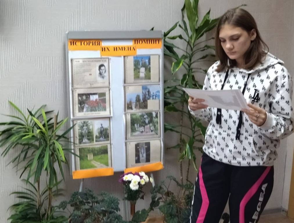 Следуя запланированному маршруту, экскурсионная группа оказалась в библиотеке ДК "Зеленая Роща", где воспитатель Потрихайлова М. Л, библиотекарь Струкова З. М. и социальный педагог Прыгаев А. Н. рассказали детям о событиях военных лет, об истории создания памятника на Братской могиле. Ребята с большим интересом работали с Книгами Памяти, находили в них информацию о своих прадедах и однофамильцах.
