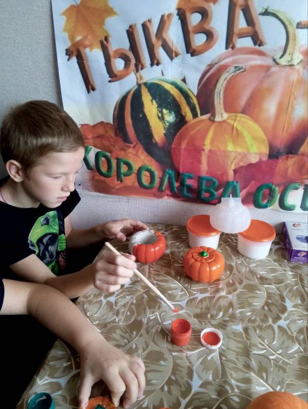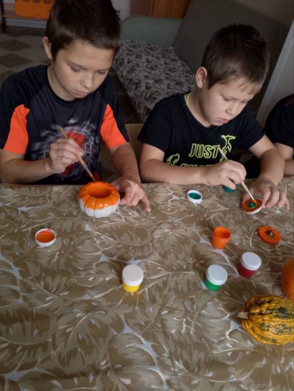 Затем все перешли к самой захватывающей части – созданию поделки! Каждая тыковка обрела свой неповторимый характер. В итоге получилась целая коллекция уникальных гипсовых тыквочек – очень ярких, праздничных и создающих атмосферу осени.