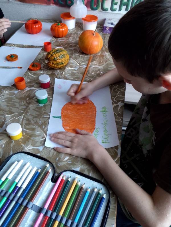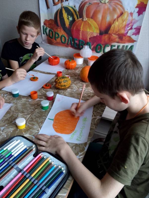 В ОКУ «Охочевский центр для несовершеннолетних «Непоседы» в творческой мастерской «Творцы — молодцы» состоялось приуроченное к Празднику тыквы занятие «Царица осеннего урожая», которое прошло в атмосфере настоящего осеннего волшебства и творческого вдохновения! Дети с самого начала были вовлечены в тему щедрости природы и богатства собранного урожая. Инна Александровна начала работу с небольшой беседы о ярких осенних красках, фруктах и овощах, особенно уделив внимание «королеве осени» – тыкве. Ребята делились своими знаниями о том, какие блюда можно приготовить из тыквы и как она выглядит.