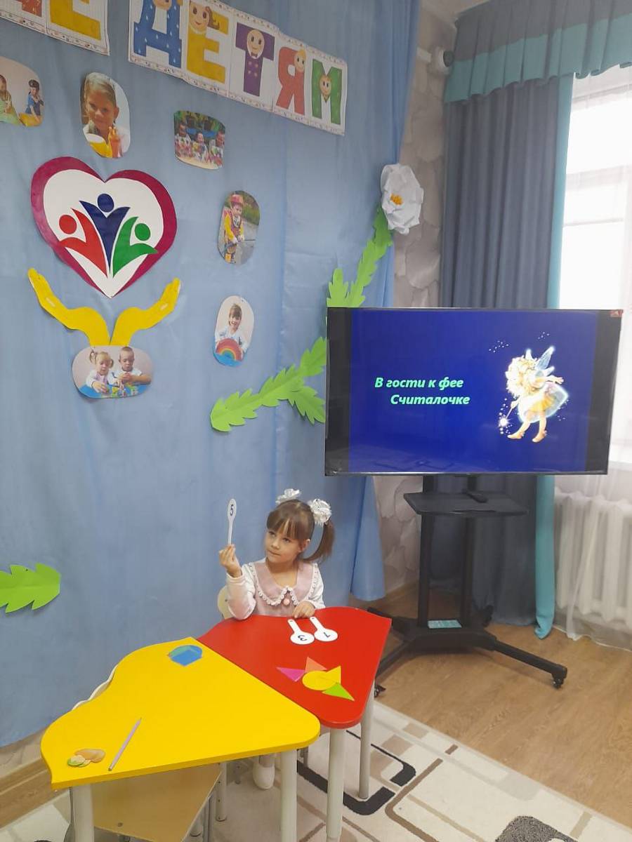 Фея Считалочка подготовила для воспитанницы много интересных заданий и игр: вместе с педагогом девочка считала, отгадывала загадки, с особым интересом различала и называла знакомые геометрические фигуры: круг, квадрат, треугольник, а также закрепила знание частей суток.