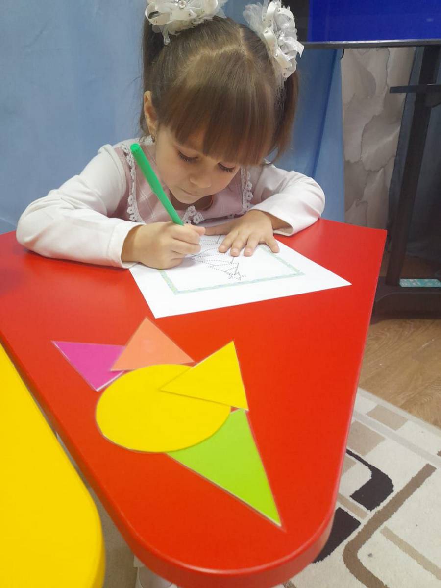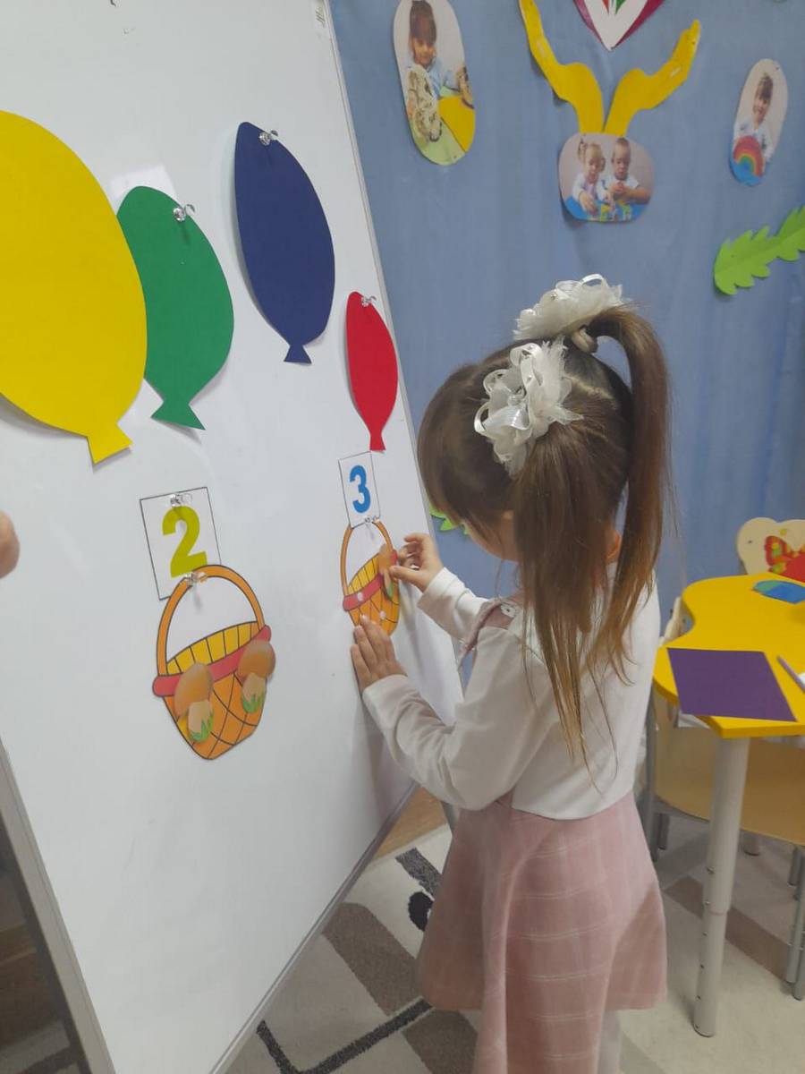 Воспитанница активно работала на протяжении всего занятия, показав математические навыки и любовь к обучению.