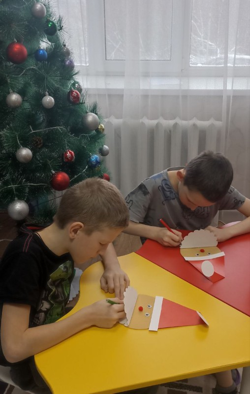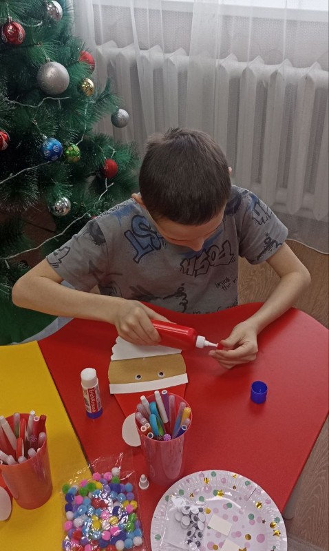 В творческой мастерской "Мастерская фантазий" воспитанники сделали аппликацию-открытку "Дед Мороз". Подготовив все заготовки для открытки, ребята принялись за дело. Дедушка Мороз получился ярким и сказочным, а в его волшебной бороде мальчики написали новогодние пожелания своим близким!