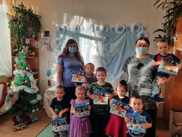 г. КУРСКА подарила ребятам большие сладкие подарки.