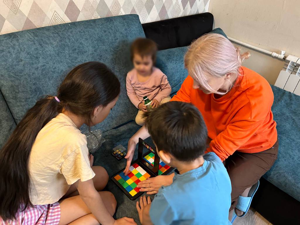 В рамках патронажа специалисты Центра «Непоседы», входящие в состав мобильной бригады, посетили многодетную семью с целью проведения развивающих занятий. Учитель-дефектолог предложила детям упражнения и задания, позволяющие погрузиться в процесс познания и помогающие лучше ориентироваться в окружающем мире. Педагог-психолог провела совместные игры, способствующие развитию памяти, внимания, обогащающие опыт взаимодействия и эмоциональную отзывчивость.