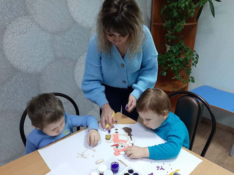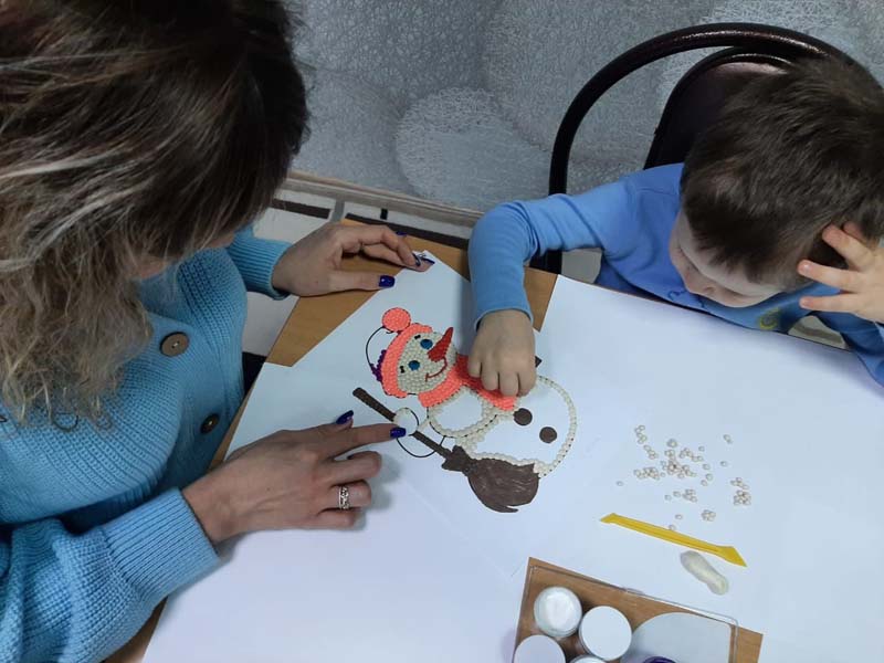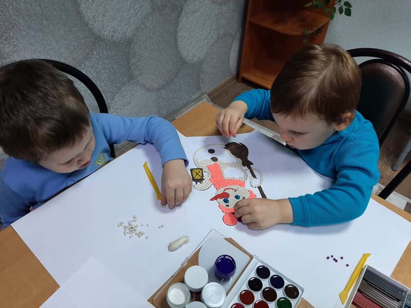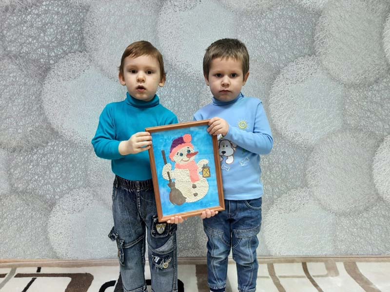 Сегодня наши воспитанники Лёня и Влад вместе с воспитателем Кристиной Александровной выполнили творческую работу " Снеговик" в стиле пластилинографии.