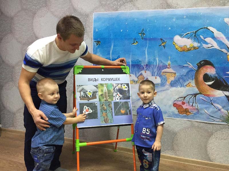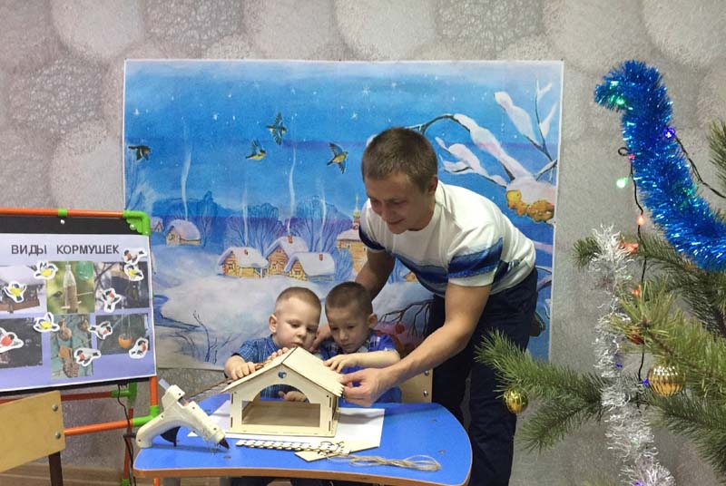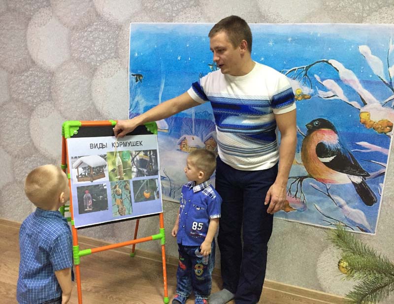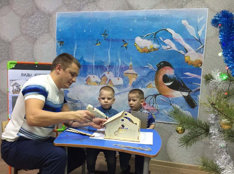 В нашем учреждении воспитатель Коробков В. Л. провёл увлекательное занятие "Поможем птицам". Ребята вначале занятия узнали все о зимующих птицах, все виды кормушек и из каких материалов их можно сделать. Затем дети с удовольствием откликнулись на предложение помочь зимующим птицам, и на время стали изобретателями и дизайнерами кормушки для птиц.