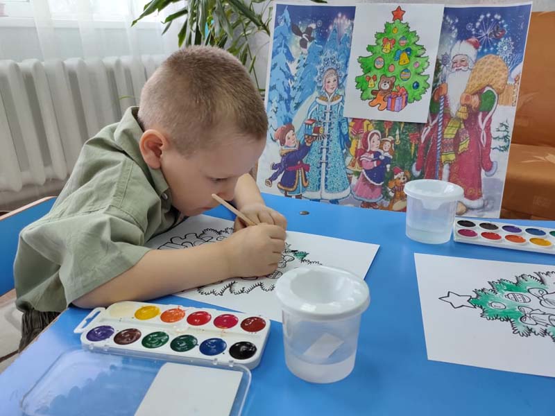 Воспитанники с удовольствием рисовали нарядную ёлочку, изображали на ней игрушки, подбирали цвета. Ведь это не просто рисунок, а работа, в которую дети вкладывали душу. Они очень старались, готовили подарок для Дедушки Мороза.