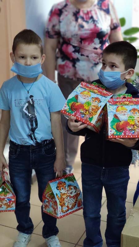 Вручив детям подарки, поздравили их и всех сотрудников с Рождеством, со старым Новым годом.