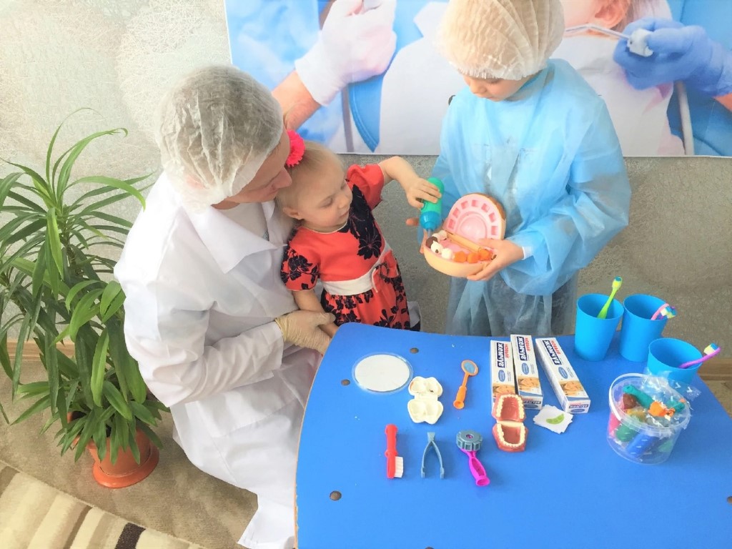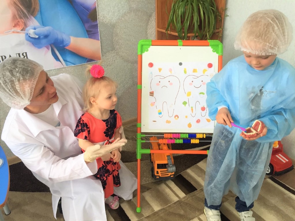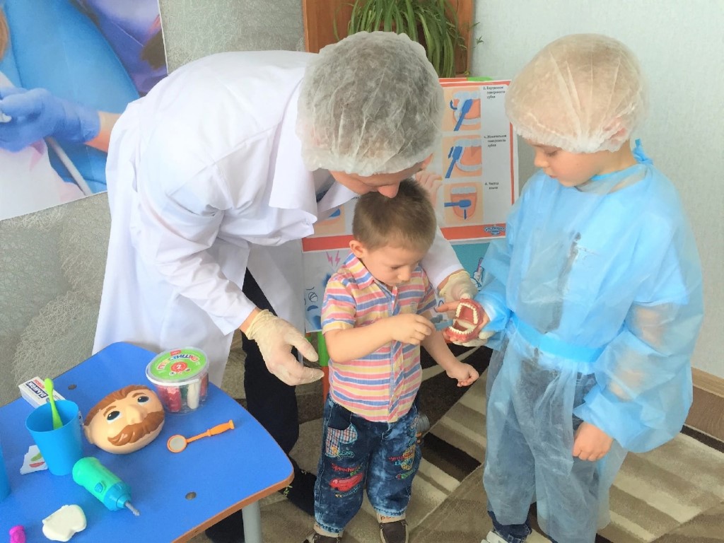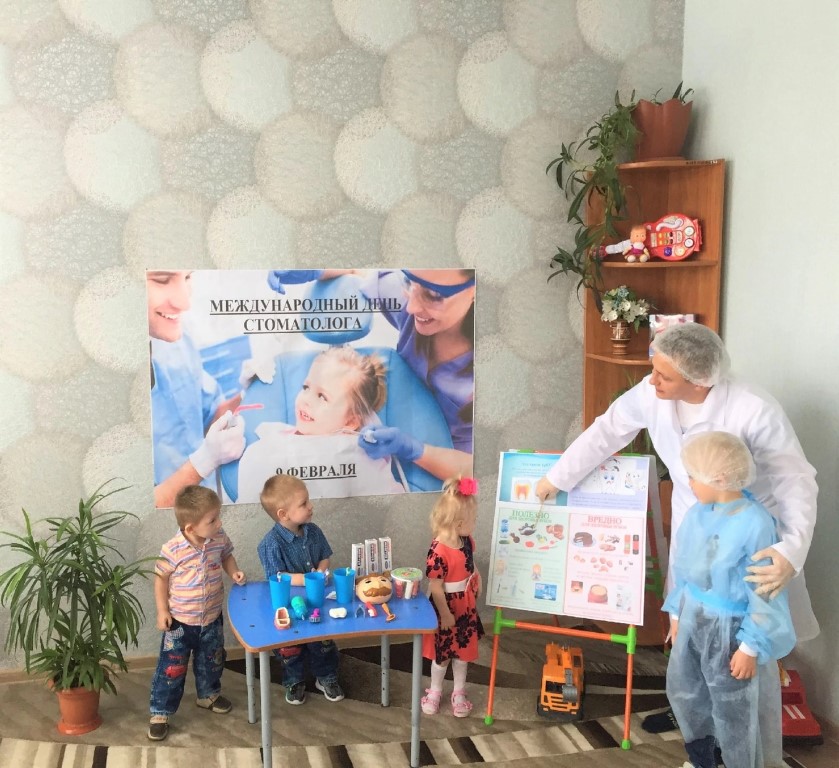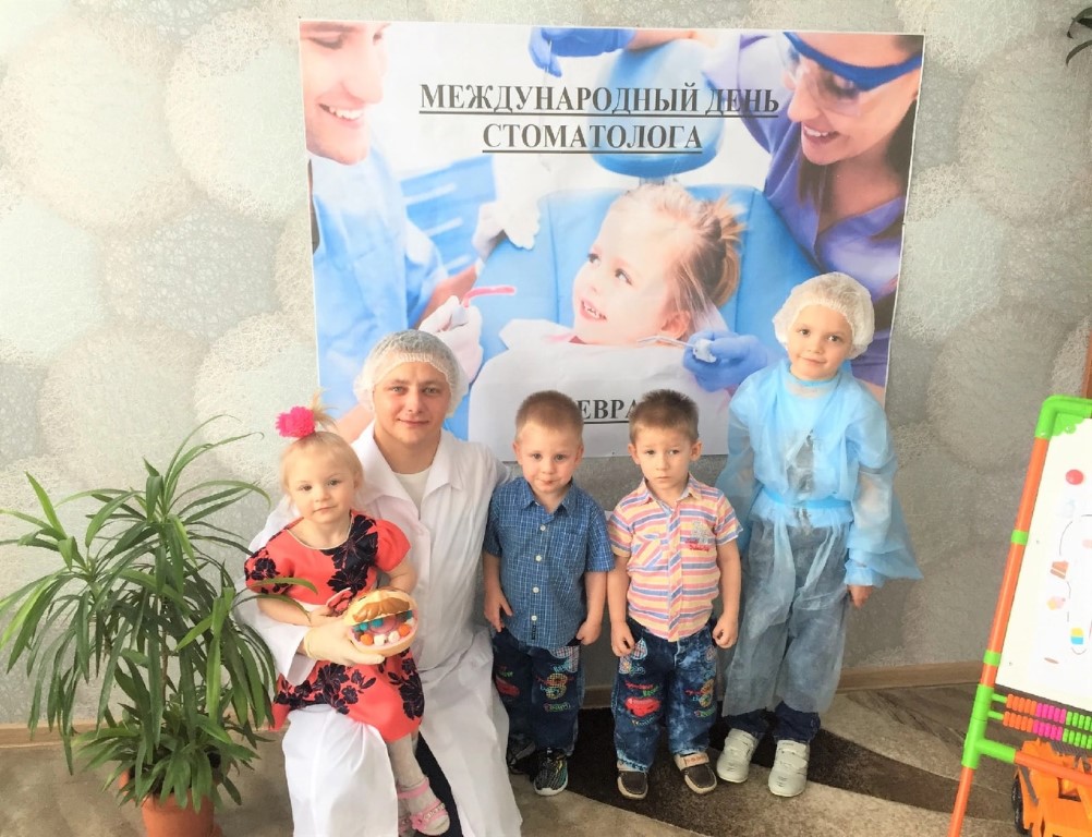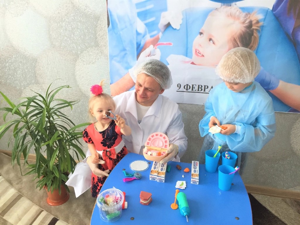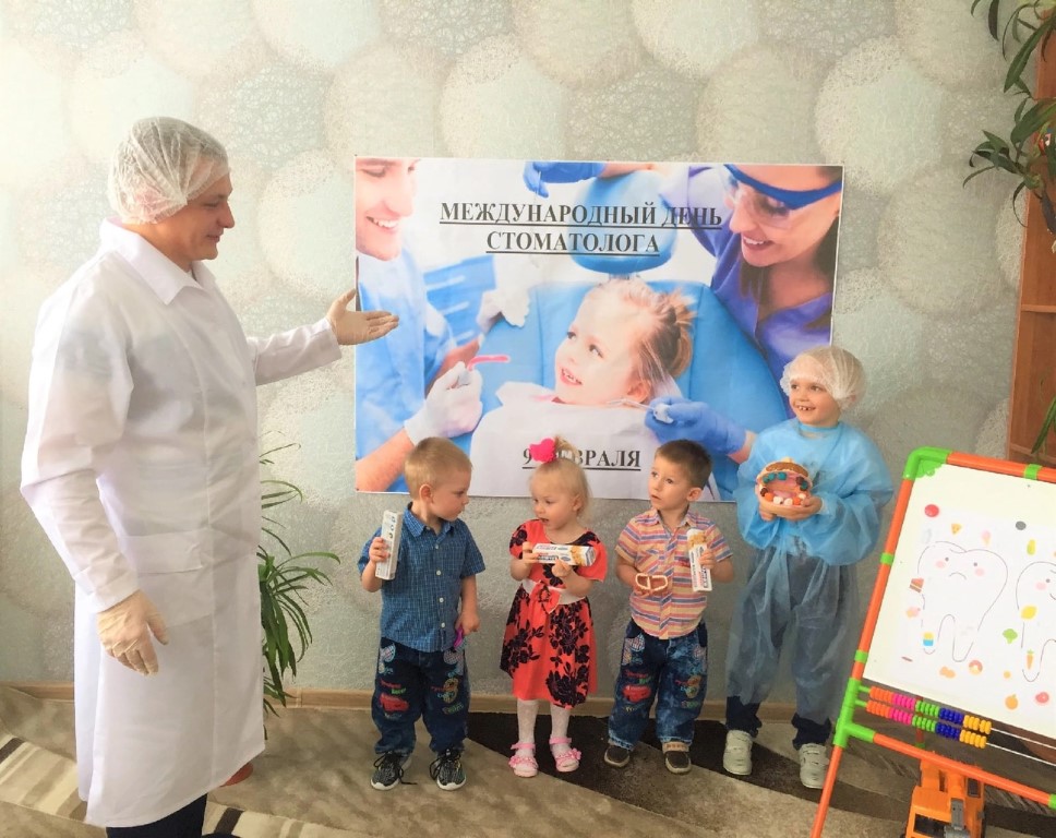 В международный день Стоматолога воспитатель Коробков В. Л. провел мастер-класс по правильной чистке зубов. В игровой форме рассказал о сохранении здоровья зубов, донес до детей, что зубы необходимо чистить каждый день: после завтрака и перед сном, каждую поверхность зуба нужно тщательно очищать движениями «солнце», «дождь» и «трава». Также потренировались делать это на игрушках – фантомах с челюстью.