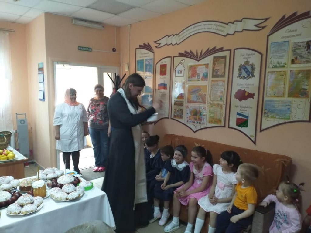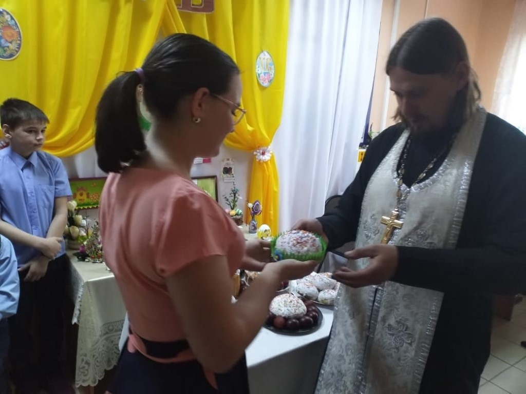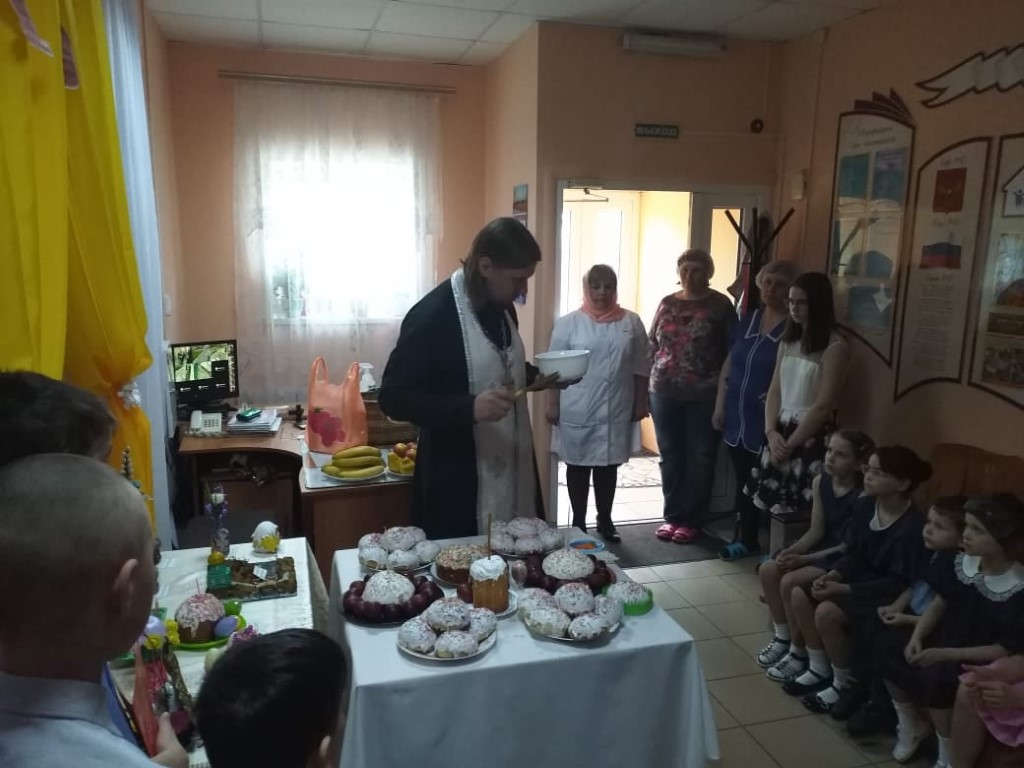 С этой целью воспитанников и сотрудников приюта посетил руководитель отдела религиозного образования и катехизации Щигровской епархии иерей Владимир Букин, который освятил пасхальные куличи, побеседовал с каждым воспитанником, рассказал об истории праздника Пасхи. Иерей Владимир благословил всех присутствующих и подарил каждому ребёнку и взрослому Пасхальное яйцо.