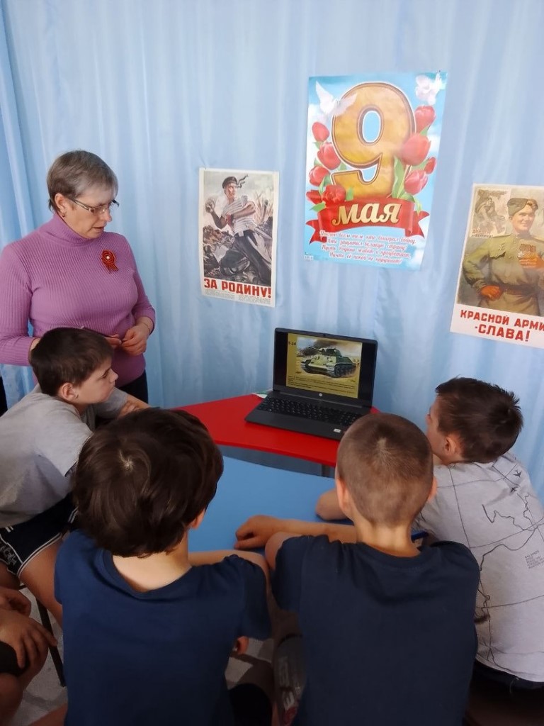 Сегодня наши мальчики пополнили свои знания о боевой технике военных лет. Они внимательно смотрели и слушали рассказ воспитателя Кузнецовой Г. В. Увлечённо беседовали по теме. Смотрели художественный фильм "Т-34". Ещё долго обменивались впечатлениями о смелости, отваге, любви к Родине героев фильма.