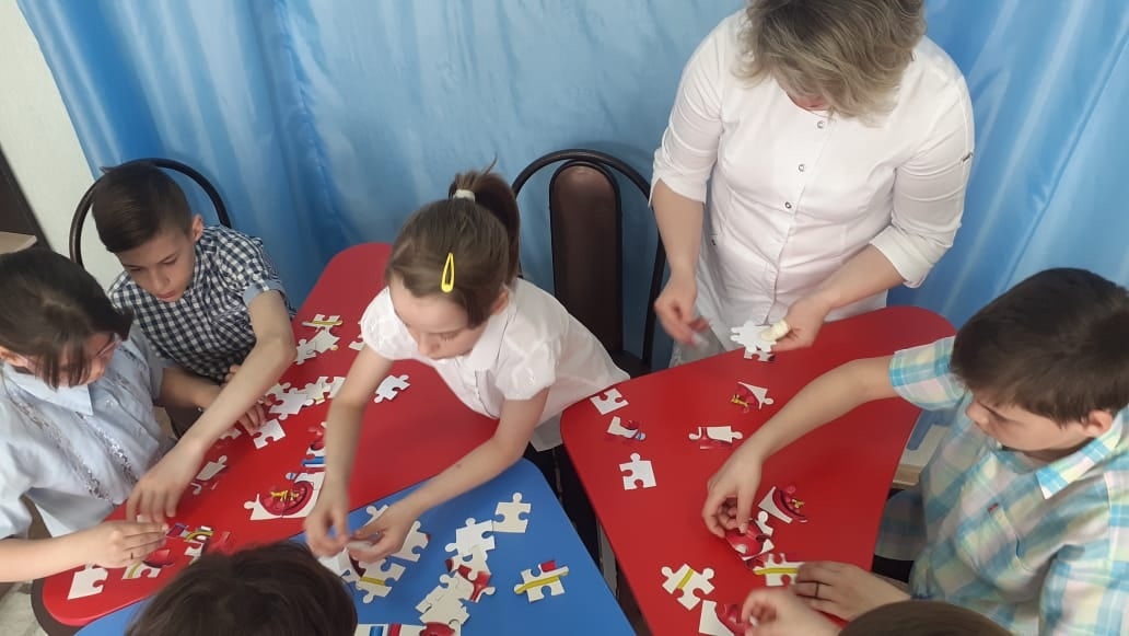 Дети заинтересованно слушали и участвовали в занятии, а в конце беседы собрали пазл.
