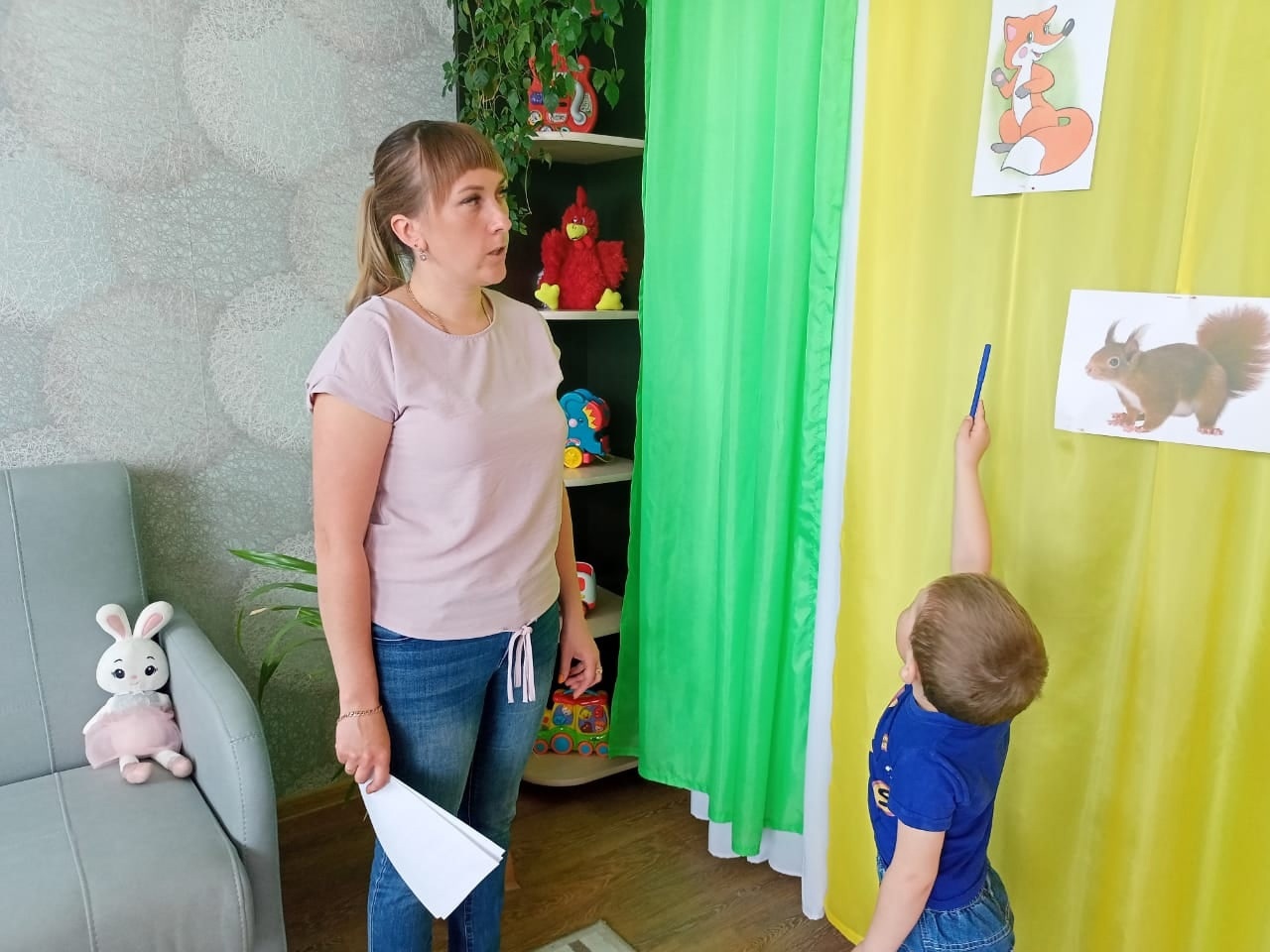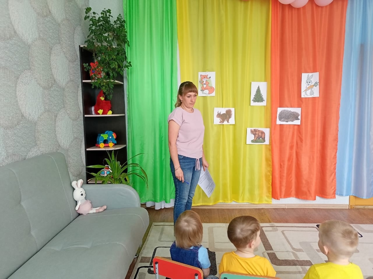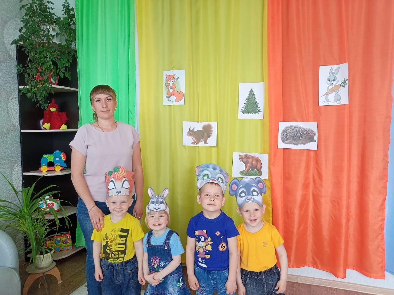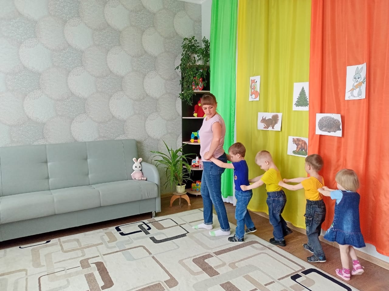 Детям было предложено отправиться в волшебное путешествие на поезде, который останавливался на различных станциях. На каждой из станций встречались дикие животные.