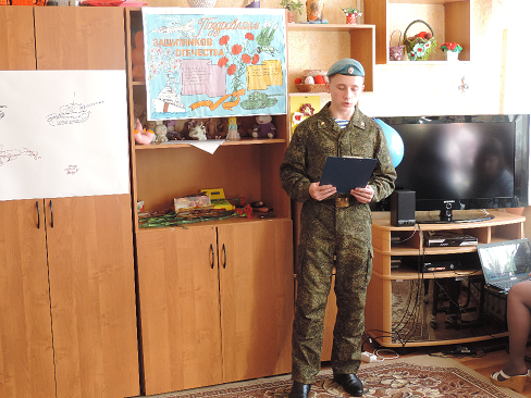 Воспитанники под руководством Косоговой З. Ю. провели акцию «Письмо Защитнику Отечества». Они написали письма солдатам, которые проходят срочную службу в рядах российской армии, поздравили военнослужащих с Днем Защитника Отечества, пожелали им легкой службы, мира, здоровья, творческих успехов, счастья, благополучия и всего самого доброго.