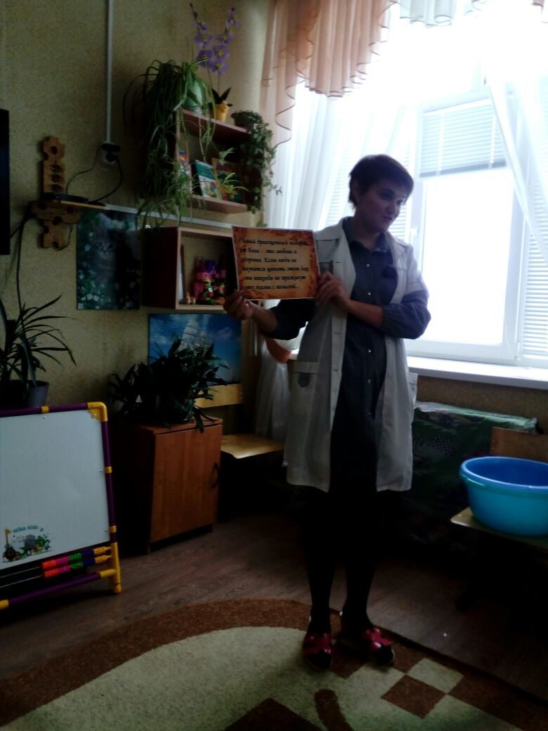 Под таким названием медсестрой Волоткевич Викторией Ивановной было проведено мероприятие, цель которого - сформировать у детей представление о здоровом образе жизни. Беседа рассчитана на детей 4-7лет. Принимало участие 7 детей. В первой части занятия дети из лепестков собирали букет "здоровья". Цветы назывались "Режим дня", "Правила питания", "Закаливание", попутно получали разъяснения о том, что обозначает каждое понятие. Далее ребята познакомились с правилами чистки зубов, методикой проведения контрастных ванночек для ног, провели утреннюю зарядку. Во второй части беседы воспитанники разгадывали загадки, слушали и участвовали в пояснении пословиц о здоровом образе жизни. Мероприятие получилось не только интересным, но и познавательным.