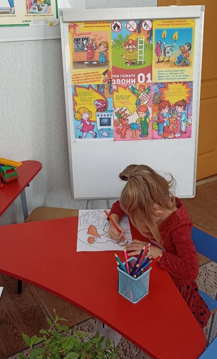 С большим интересом воспитанники раскрашивали тематические рисунки, а в завершение занятия посмотрели мультфильм "Кошкин дом " и сделали вывод: чтобы не случилось беды, нужно соблюдать правила пожарной безопасности.