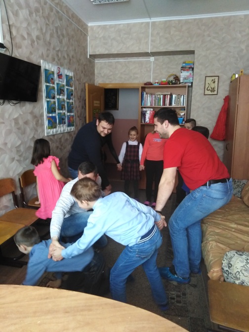 Новогодние праздники давно позади, а в нашем приюте чудеса продолжаются. 1 марта 2019 года наши добрые знакомые волонтеры из г. Курска: братья Копуновы Александр и Андрей, Киндеев Михаил и Киндеева Раиса устроили нашим воспитанникам настоящий праздник. В течение нескольких часов они играли с детьми в различные игры: «Кошки-мышки», «Слова», «Колечко-колечко», «Краски», загадывали интересные загадки. Дети рассказали им стихи, спели несколько песен хором.
