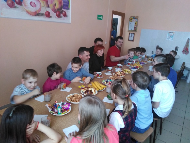 Затем все дети были приглашены за сладкий стол, где в милой дружной обстановке дети рассказывали о своих увлечениях, о любимых сладостях.