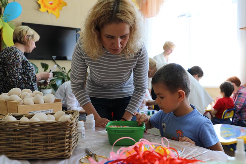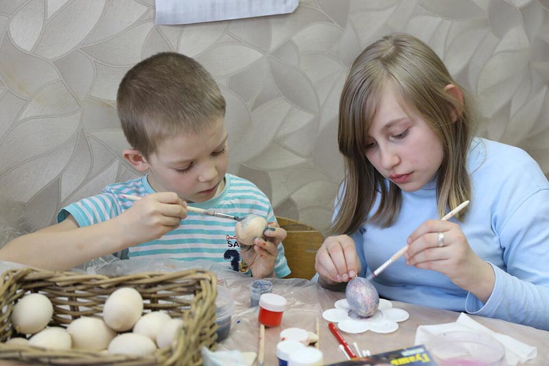 Традиционным подарком на Пасху является пасхальное яйцо. Вместо обыкновенных куриных яиц можно подарить деревянное, расписанное своими руками. Деревянные заготовки гости привезли с собой. И постарались научить этой росписи воспитанников всех групп.