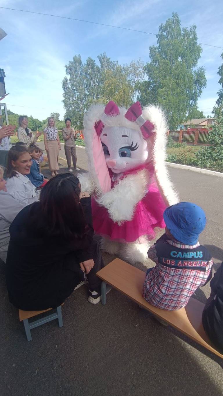 Наши гости - Мировой судья Елена Шашкина вместе с аппаратом судебного участка № 1 г. Щигры и Щигровского района - приехали к детям с музыкальным выступлением ростовой куклы «Зайка».