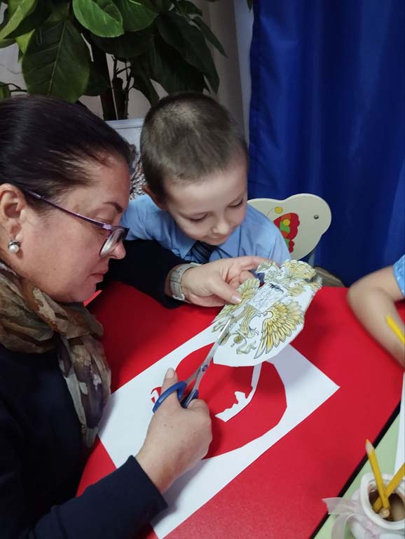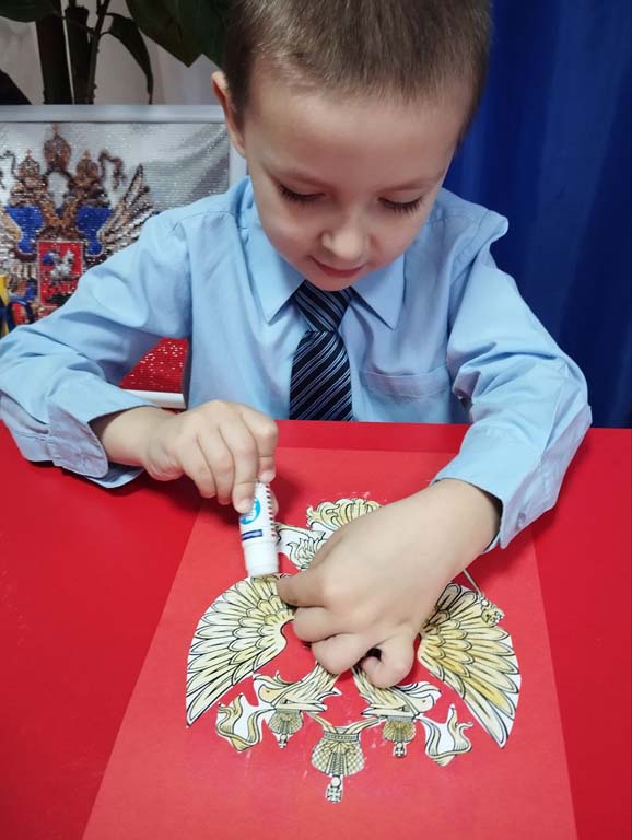 Ребята своими руками сделали интересную поделку. Каждый старался нарисовать своего орла, чтобы он выглядел достойно и величественно. Завершилось мероприятие просмотром познавательного мультфильма, повествующего о значении государственных символов.