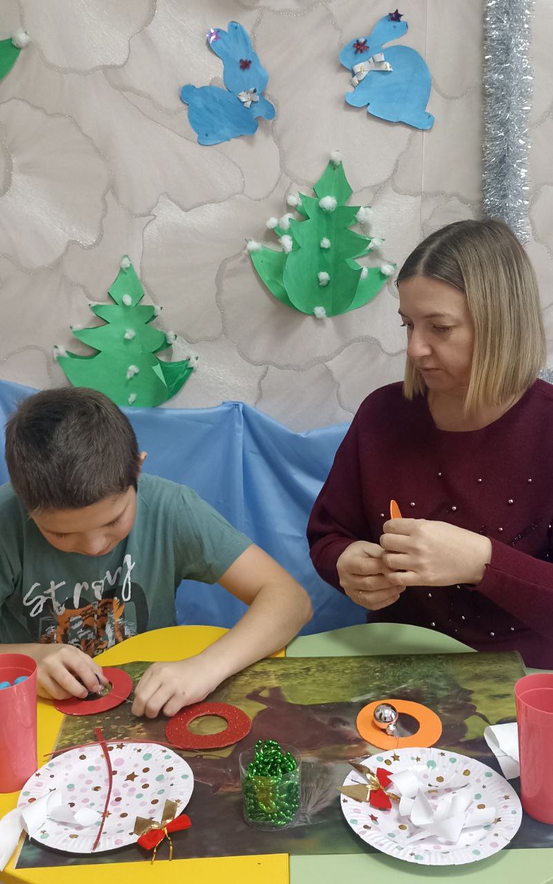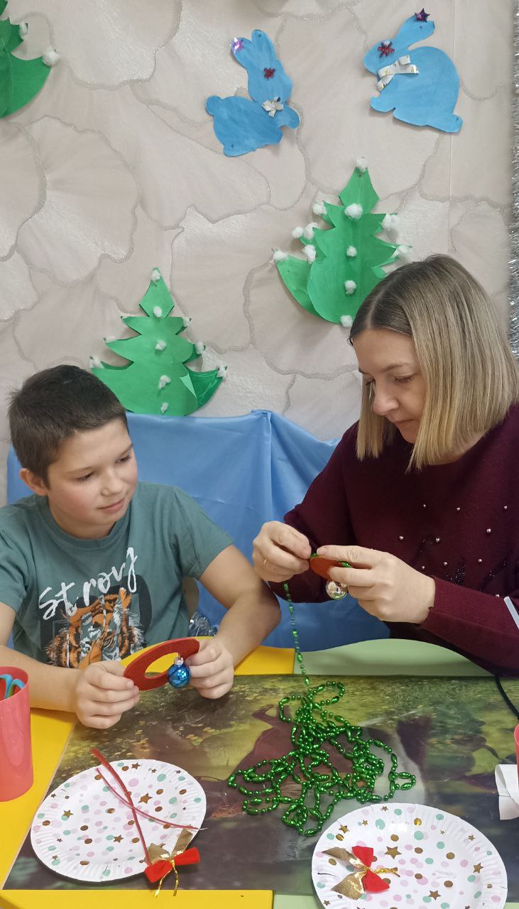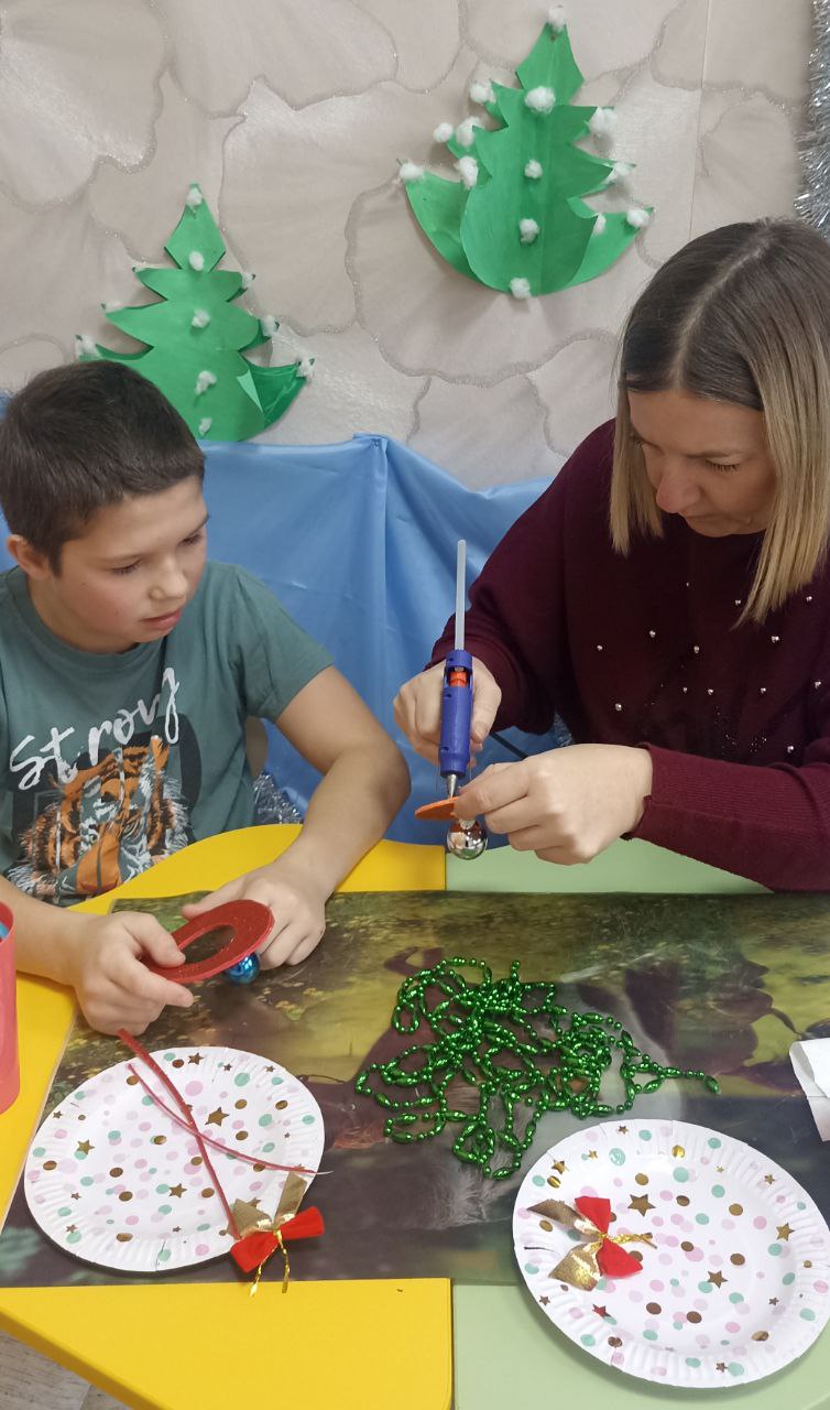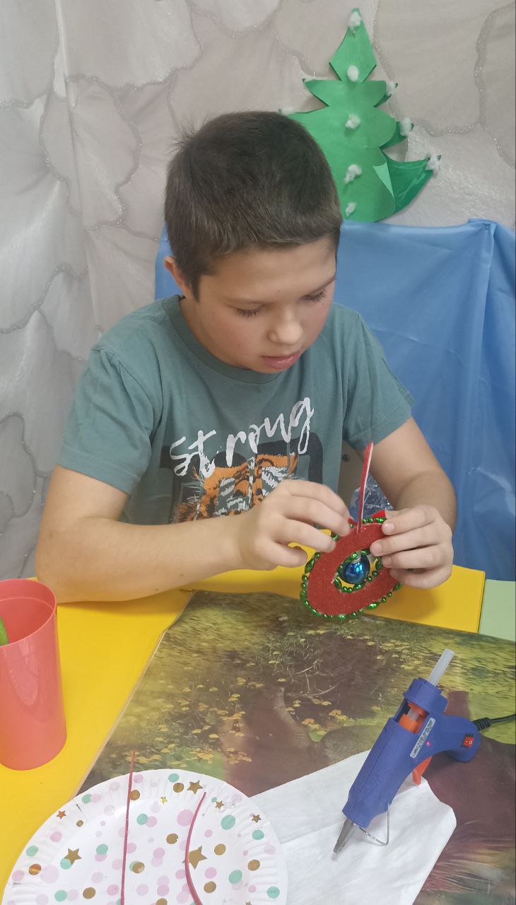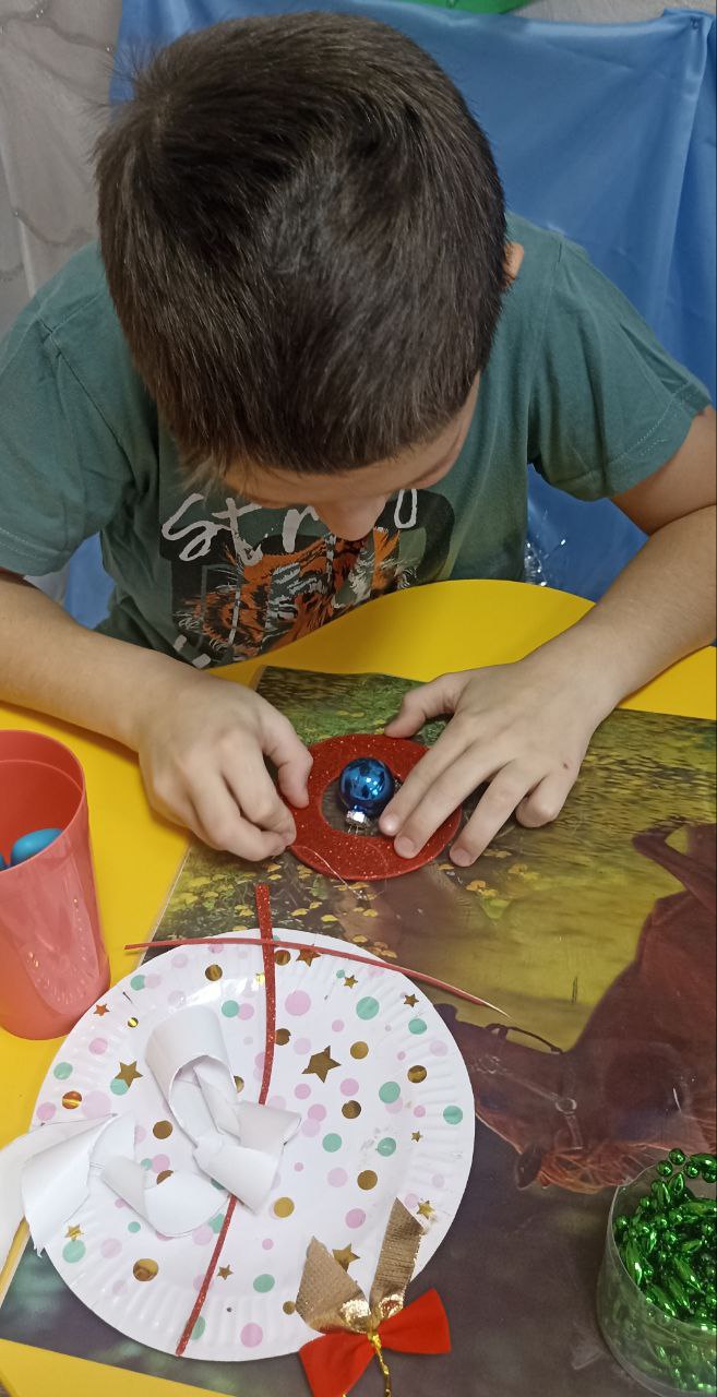Необычное занятие по изготовлению рождественского венка прошло в творческой мастерской "Мастерская фантазий". Перед началом занятия воспитанник узнал о традиции украшения домов венками в канун Нового года и Рождества и о том, какими они бывают.
