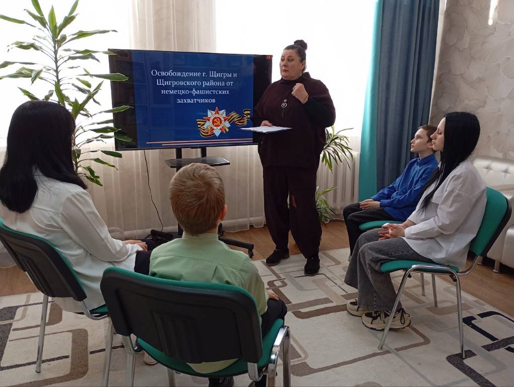 В ноябре 1941 года город Щигры и Щигровский район Курской области были оккупированы немцами. Оккупация продолжалась около 15 месяцев. В течение этого времени захватчики установили жесткий режим, угнали в Германию 10 тысяч жителей и уничтожили около 3 тысяч человек. Эти 440 страшных дней не вычеркнуть из памяти щигровцев. Их сами жители называли «черными», так как в это время немцы утверждали новый порядок массовыми расстрелами, виселицами и кровавыми акциями. Людей убивали, морили голодом, а трупы сбрасывали в пруды и колодцы. Об этом страшном времени и об освобождении города и района от фашистских захватчиков шла речь на занятии «Бессмертие и бесстрашие», подготовленное социальным педагогом Зиновьевой Е.В. Воспитанники узнали много нового о жизни щигровцев во время оккупации, посмотрели документальный фильм о героях, освободивших нашу землю, рассмотрели фотографии тех, кто отстоял родной город. Кульминацией занятия стало возложение венка к братской могиле и минута молчания, которой ребята почтили память павших защитников.