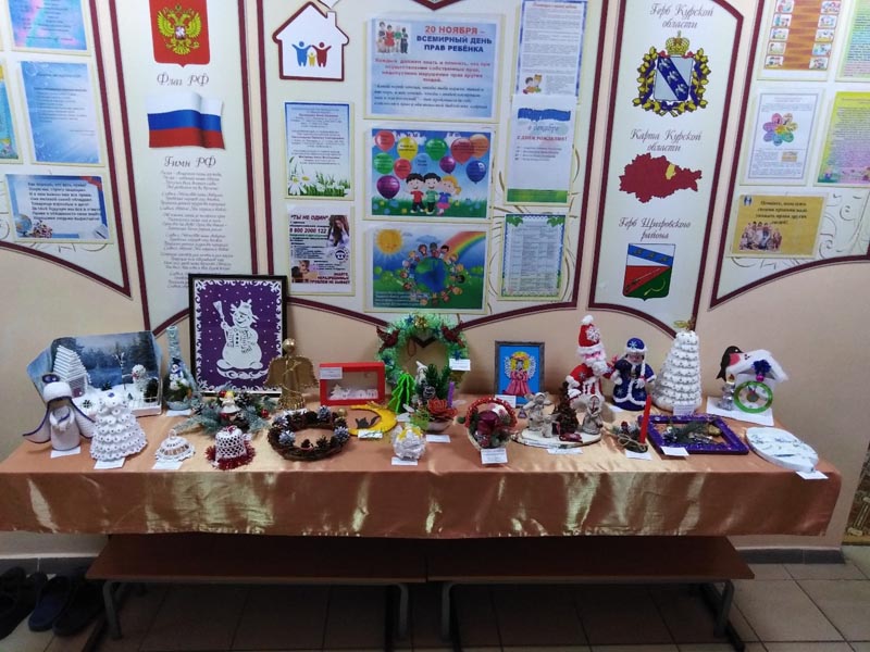 Порадовало участие воспитанников в творческой Новогодней выставке. Поделки были великолепными. Это были рисунки, панно, композиции из природного материала.