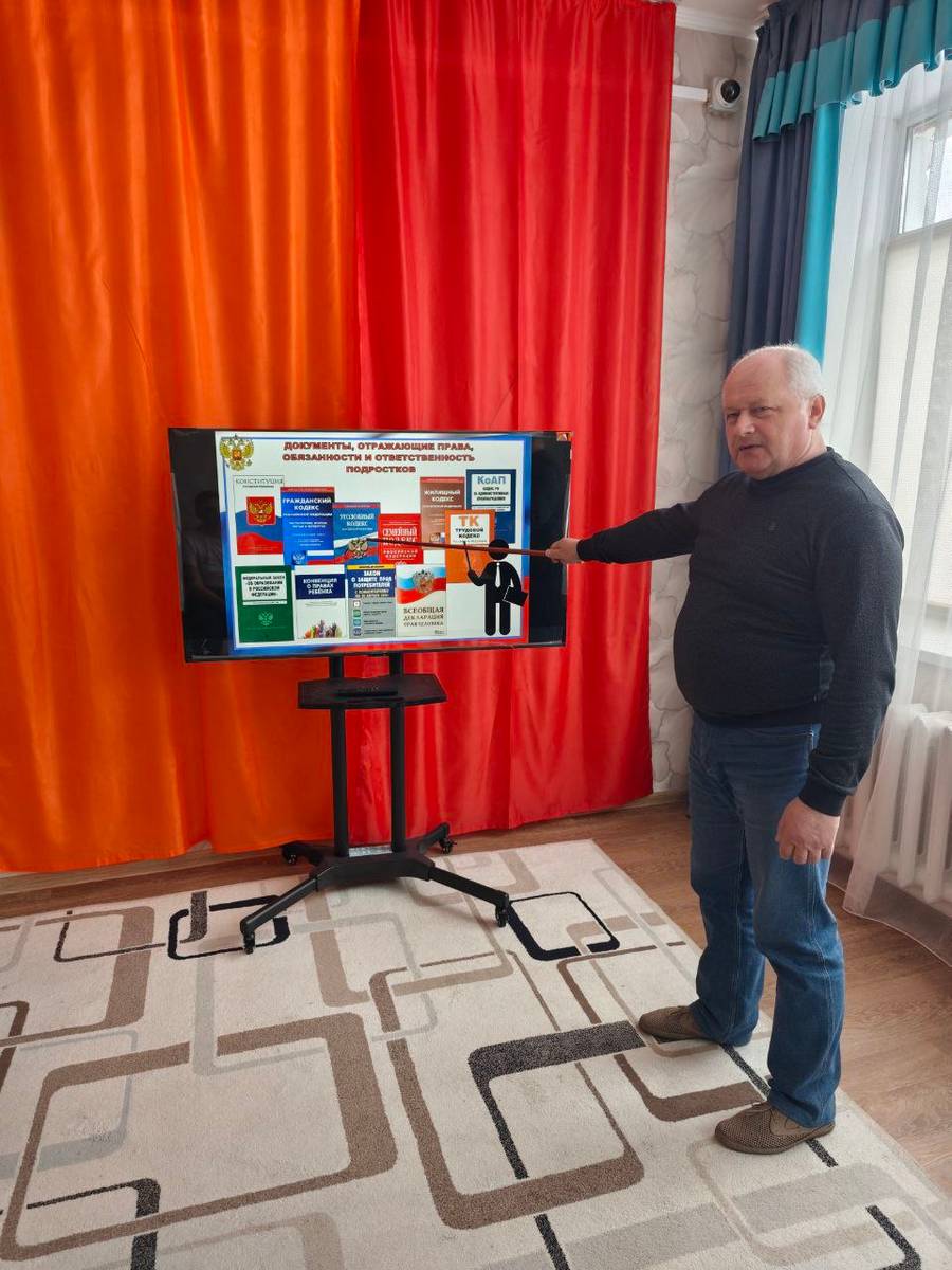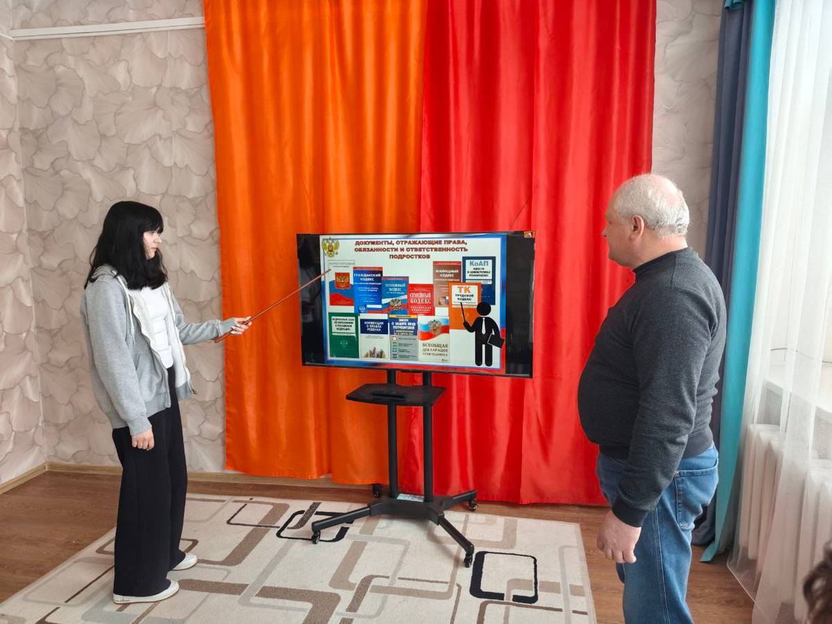 На занятии с социальным педагогом воспитанники Центра вспомнили основные нормативные документы Российской Федерации, регламентирующие жизнь общества, законодательные акты, с которыми им придется столкнуться, поговорили об ответственности за их нарушения, инстанциях, в которые можно обратиться с проблемами правового характера, посмотрели видеофрагменты на данную тему.