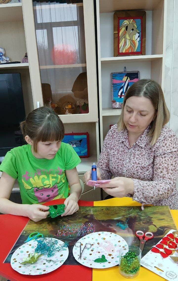 В преддверии Международного женского дня в творческой мастерской (воспитатель Сочивец М.А.) на занятии по изготовлению поделки к 8 Марта воспитанница Настя с особым волнением изготовила особенный подарок для самого дорогого человека. Девочка погрузилась в творческую атмосферу и с особым трепетом, любовью и старанием создала уникальную поделку, которая точно порадует близкого человека девочки и надолго сохранит у неё самой память о тёплых моментах творчества.