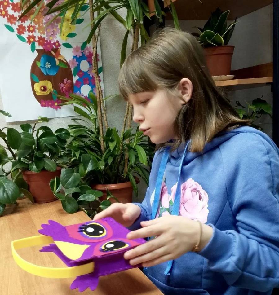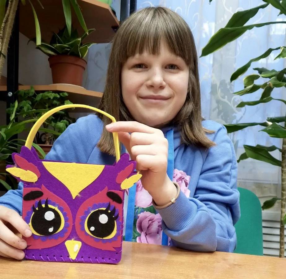 В творческой мастерской «Творцы-молодцы» (воспитатель Коренева И.А.) прошло занятие «Сумочка из фетра», на котором воспитанница Анастасия увлеченно работала над созданием сумочки в виде совёнка. Такой творческий процесс не только способствует всестороннему развитию ребёнка, но и развивает мелкую моторику рук, улучшает координацию движений, а также позволяет ему проявить фантазию и развить уверенность в себе.