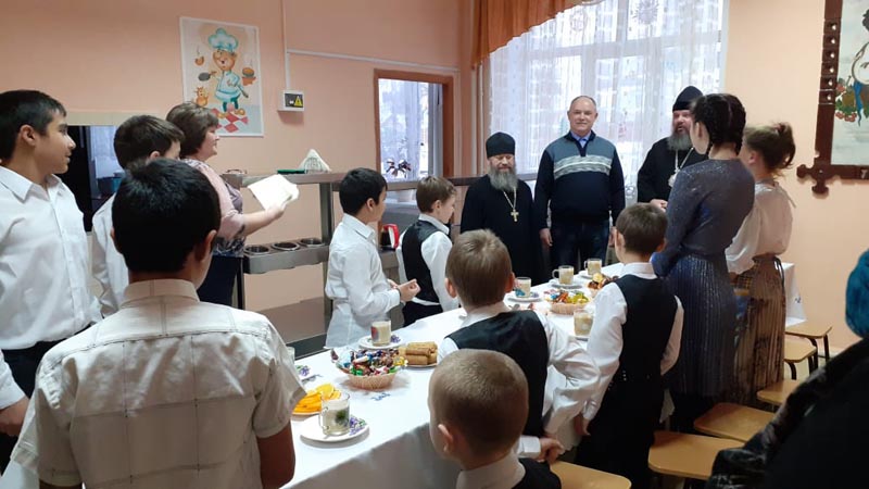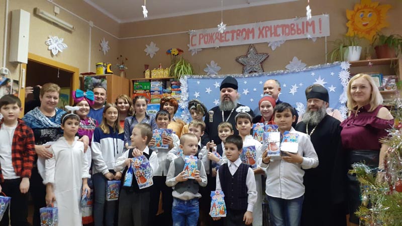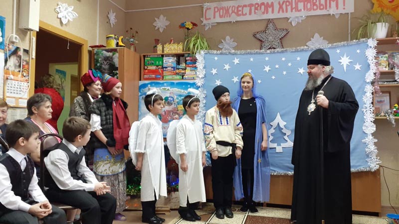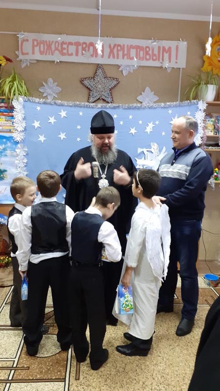 В конце Рождественского утренника Епископ Щигровский и Мантуровский Владыка Паисий поздравил всех со светлым праздником Рождества Христова и благословил, подарил новогодние подарки.