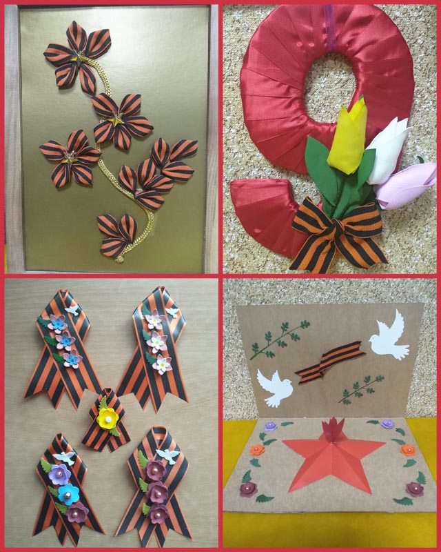 Воспитатели познакомили и показали малышам атрибуты и символы того военного времени, которые были использованы в дальнейшем для изготовления работ. Поделки получились интересными и оригинальными.