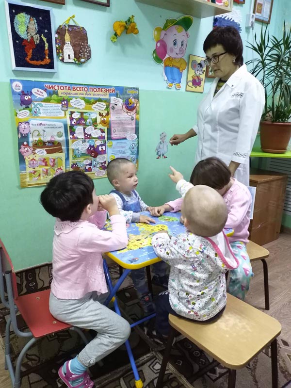Ребята вспомнили стихотворение про доброго доктора, а старшая медицинская сестра Светлана Михайловна рассказала детям почему чистота залог здоровья.